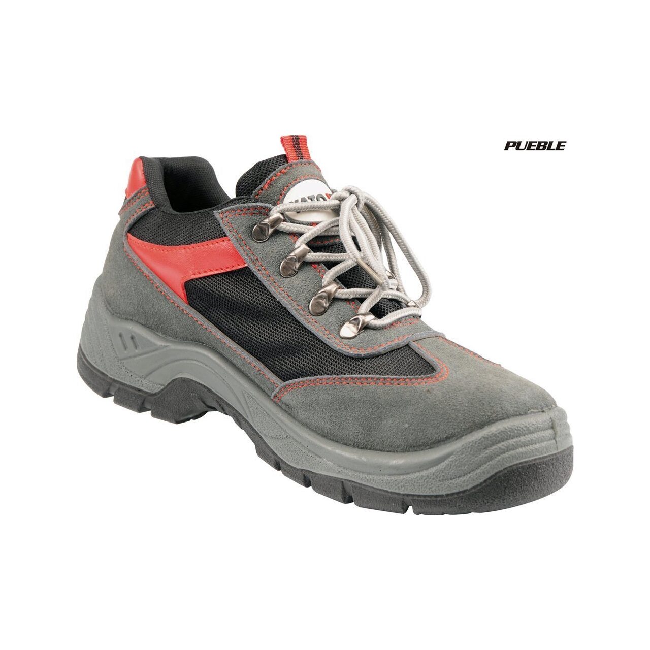 Caracteristici produsPantofii de lucru YT-80587 din seria PUEBLE S3 sunt un model cu vârf din oțel rezistent la impact, inserție anti-puncție și o parte special concepută a tălpii, care se suprapune peste vârful pantofului, pentru a preveni deteriorarea acestei piese. Datorită structurii sale compacte, pantoful reduce semnificativ permeabilitatea și absorbția apei, iar partea superioară din două materiale confecționată din piele de capră și o plasă specială cu mai multe straturi garantează o circulație a aerului foarte bună.