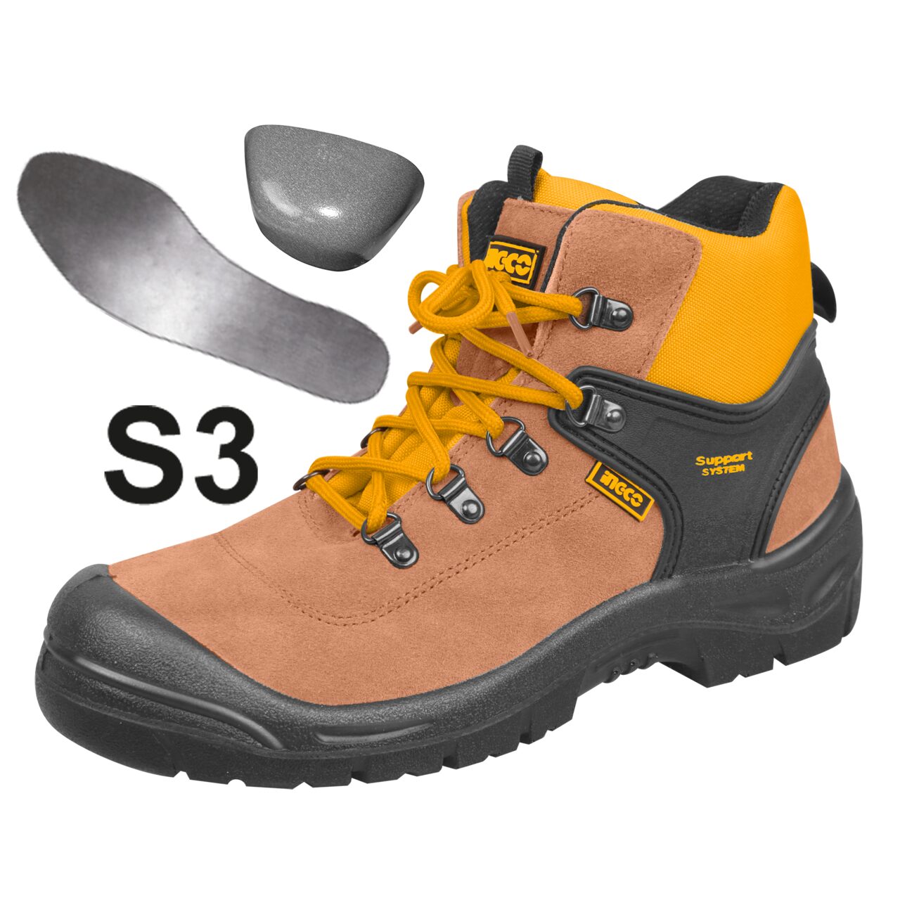 Bocanci protectie piele intoarsa+textil cu talpa varf metalic 44, pentru protectie in conditii dificile - Ingco SSH12S1P.44