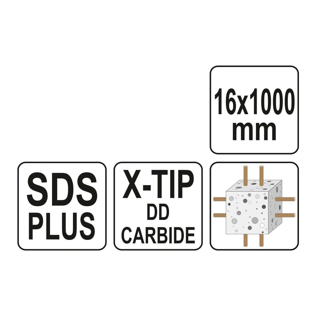 Burghiu SDS+, varf x, 16x1000 Yato YT-41971 - Informații despre acest produs: