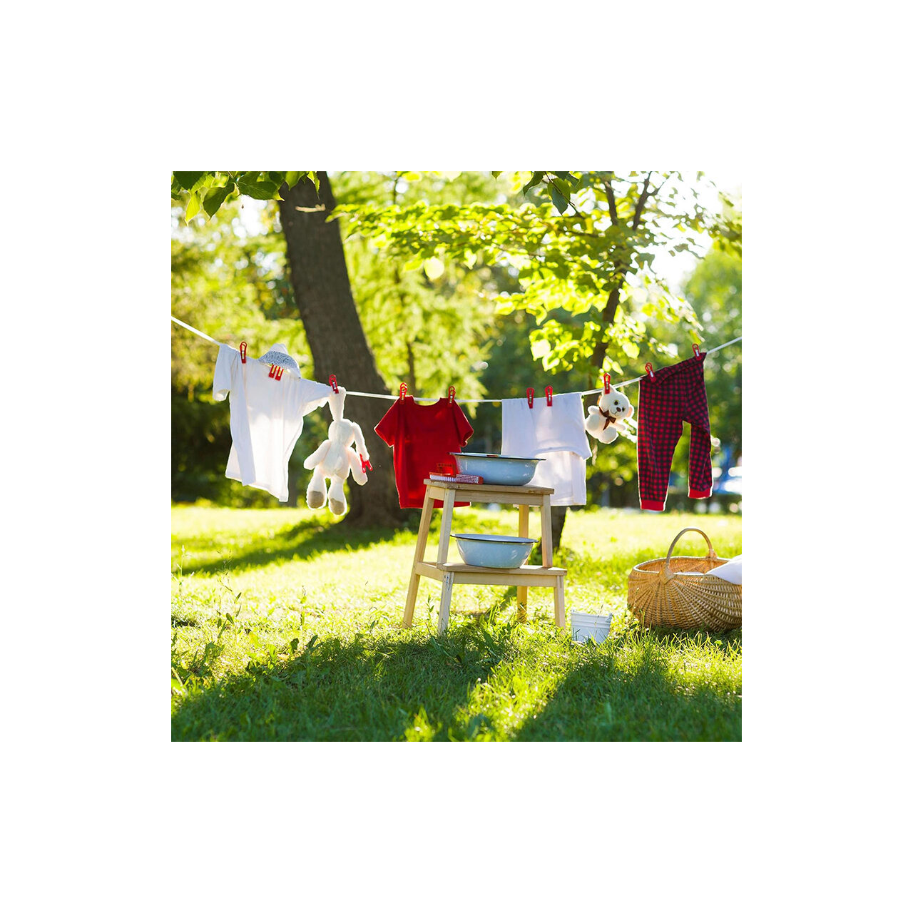 - poate fi utilizat atât în locuințe, cât și în campinguri, balcoane, grădini sau orice alt spațiu potrivit pentru uscarea hainelor în aer liber.