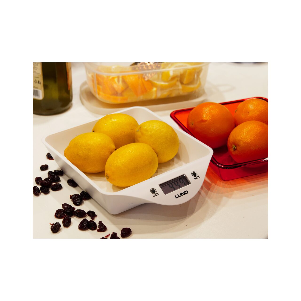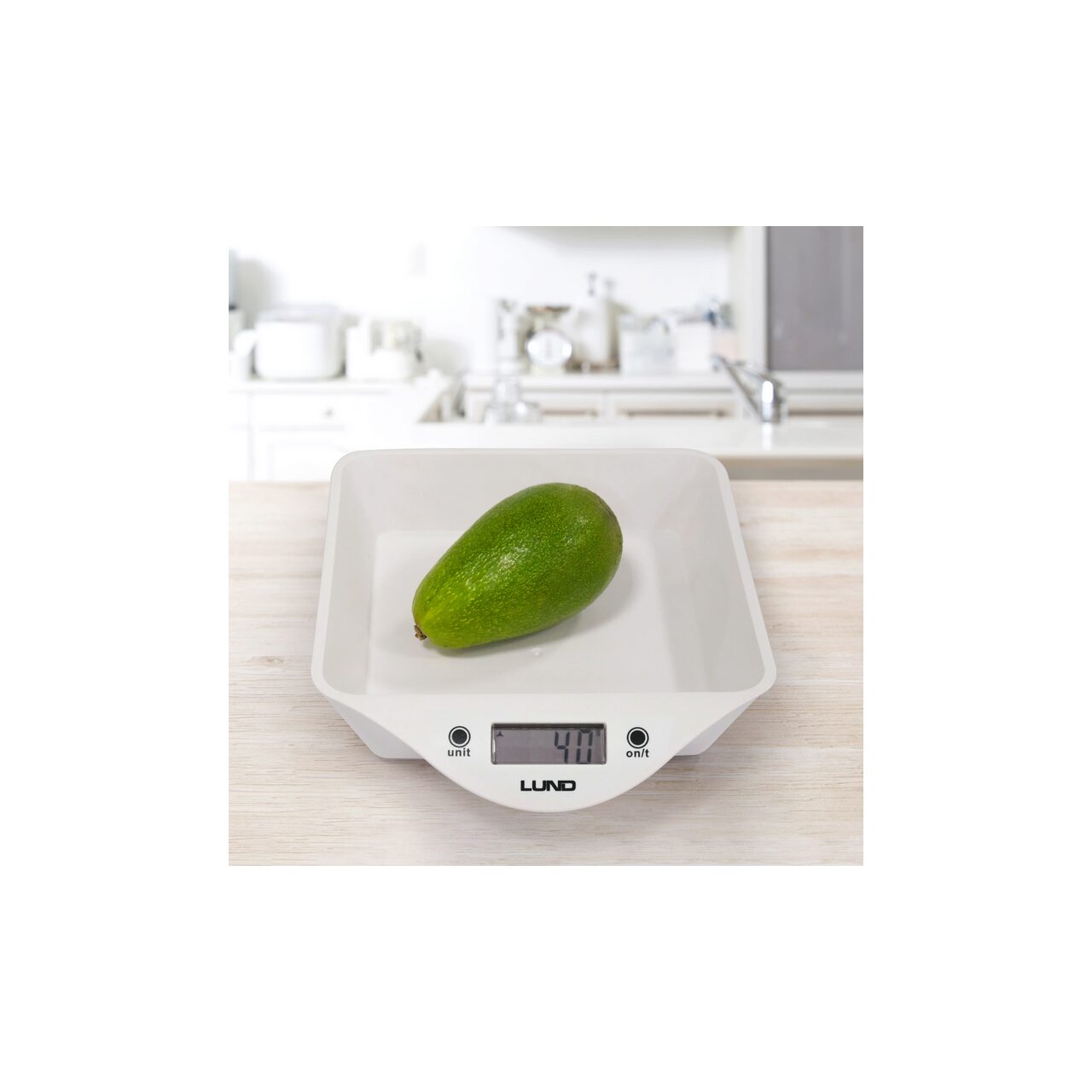 Cântar de bucătărie LUND cu bol cu o capacitate totală de 800 ml și o încărcare maximă de 5000 g. Echipat cu un afișaj LCD clar care afișează 4 unități de greutate selectabile, precum și indicatori de supraîncărcare și baterie descărcată. Un avantaj suplimentar este posibilitatea de a scoate bolul și de a-l spăla în mașina de spălat vase.