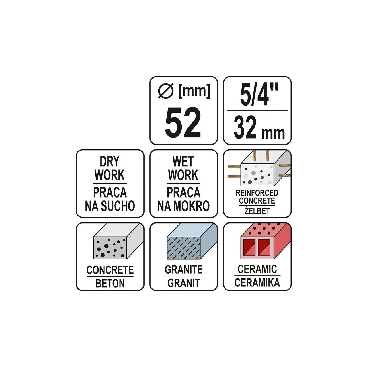 Carota cu diamanat 5/4 " 430 / 52 mm Yato YT-60373 - Informații despre acest produs: