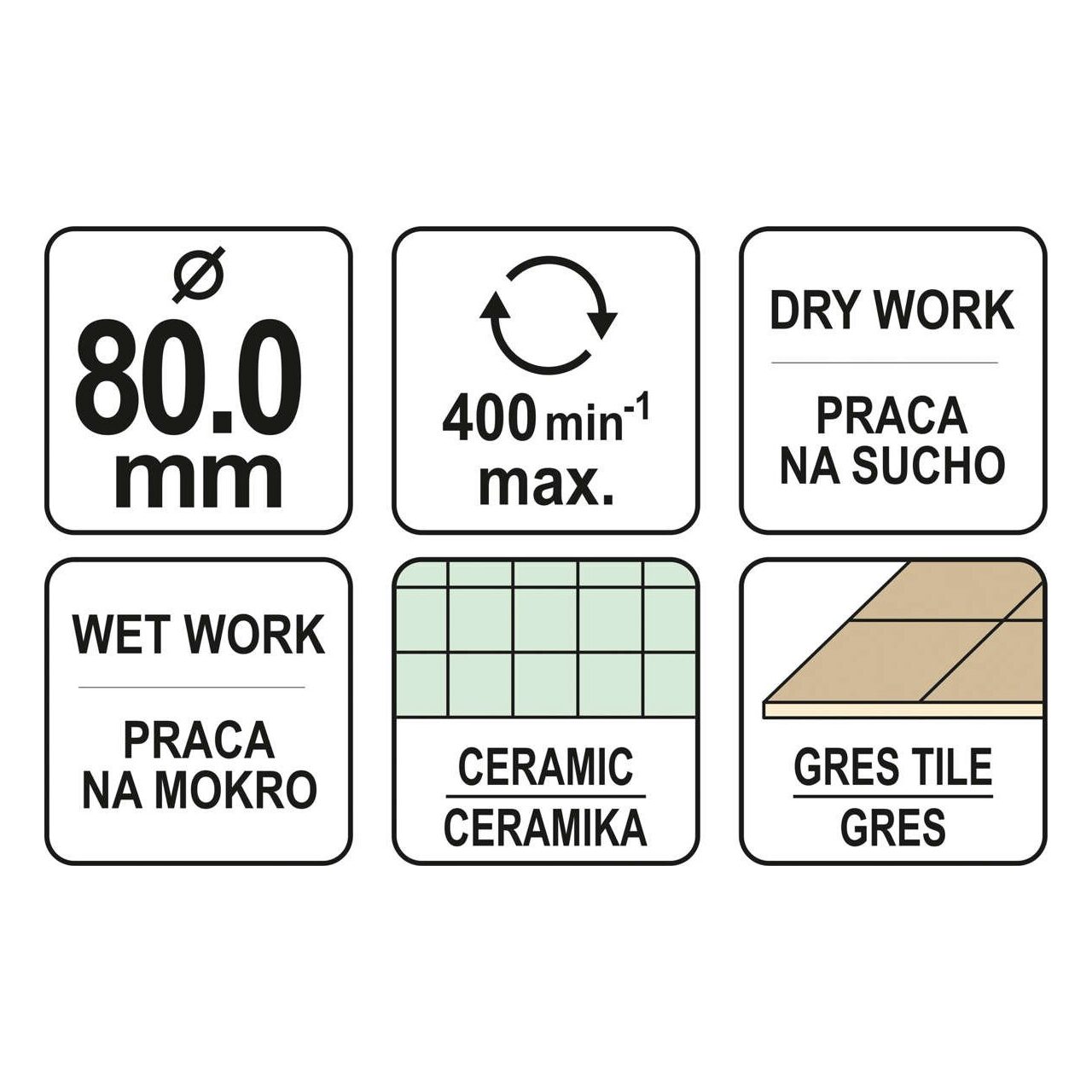 Carotă diamantată plăci ceramice 80mm Yato YT-60434 - Informații despre acest produs: