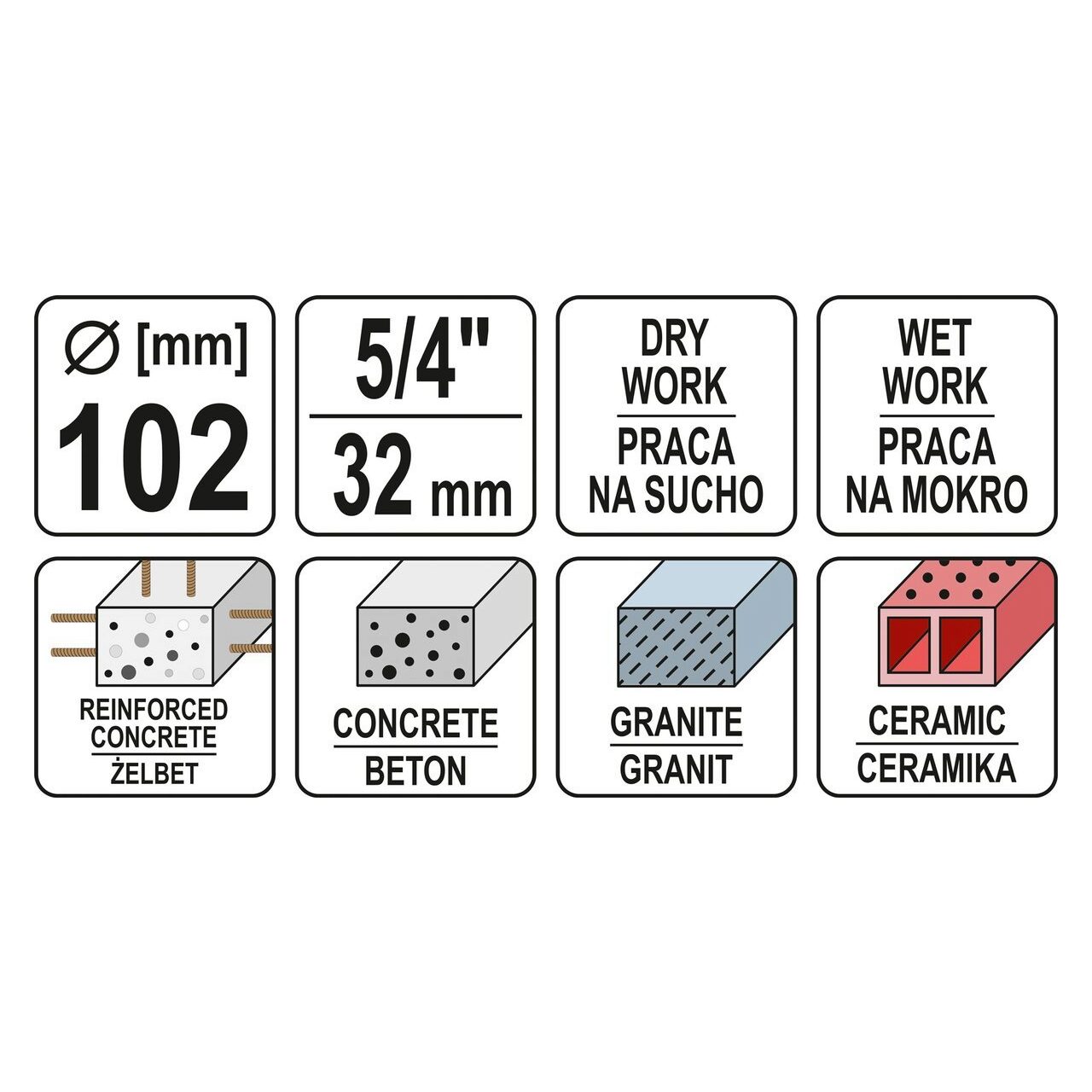 Carota diamantata pentru beton 5/4" (32 mm ) 102 / 430 mm Yato YT-60376 - Informații despre acest produs: