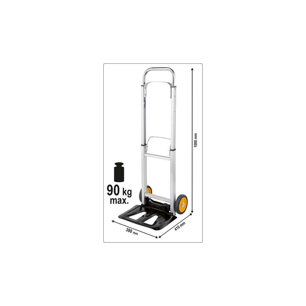 Cărucior pliabil de transport cu o capacitate de încărcare de 90 kg.