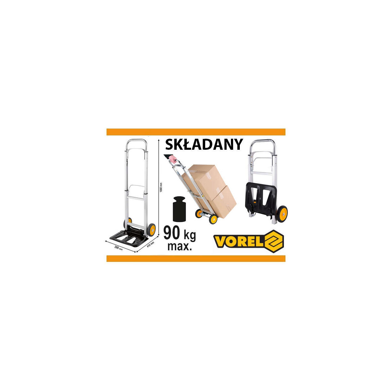 Carucior pliabil aluminiu, 710 mm, 90 kg Vorel 78661 - Informații despre acest produs: