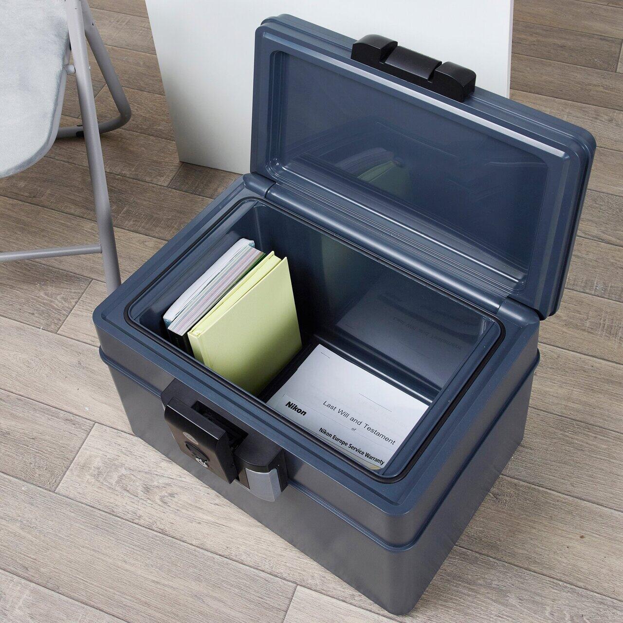 Casetele rezistente la foc și apă sunt proiectate să-ți păstreze documentele și mediile de stocare digitale organizate și protejate de foc și umezeală.