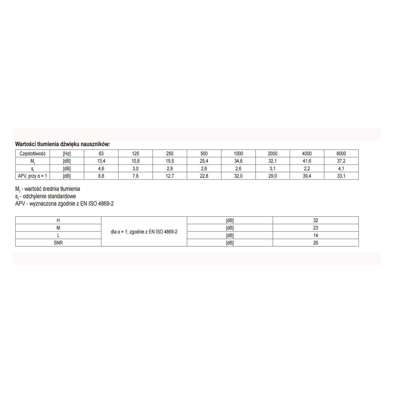 Căștile de protecție care reduc zgomotul protejează operatorul împotriva zgomotului dăunător prin reducerea nivelului de zgomot măsurat în decibeli prin valoarea parametrului SNR . Limita superioară pentru o zi de lucru de 8 ore este stabilită la 85 dB . Dacă măsurătorile medii de zgomot la locul de muncă depășesc această valoare, atunci ar trebui să aveți căști de urechi cu parametrul SNR care să permită reducerea nivelului de zgomot la 85 dB sau mai puțin. Presupunând că vom lucra tot timpul în căști cu parametrul SNR 32 și într-un mediu de lucru cu un nivel de zgomot de 116 dB, atunci vom reduce zgomotul la 84 dB.