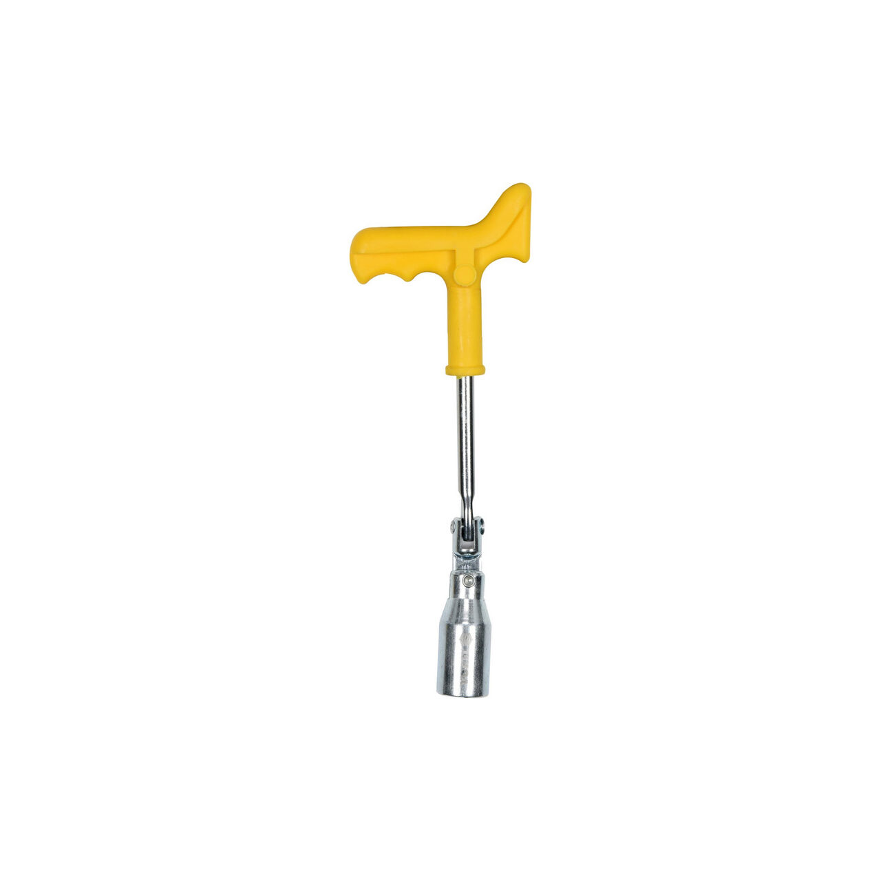Cheie pentru bujii de 21 mm. Fabricată din oțel pentru scule, are o articulație pentru o lucru mai ușor și un mâner confortabil din plastic. Lungime totală 260 mm.