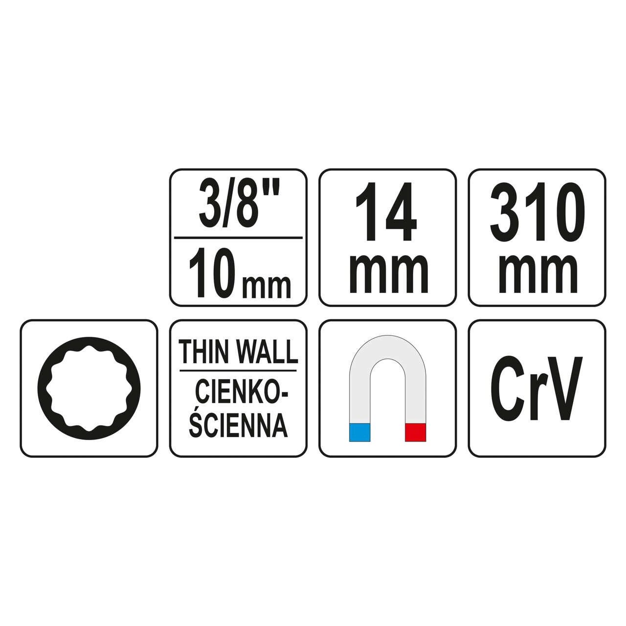 Cheie tubulara bujii 14mm cu prelungitor Yato YT-08163 - Informații despre acest produs: