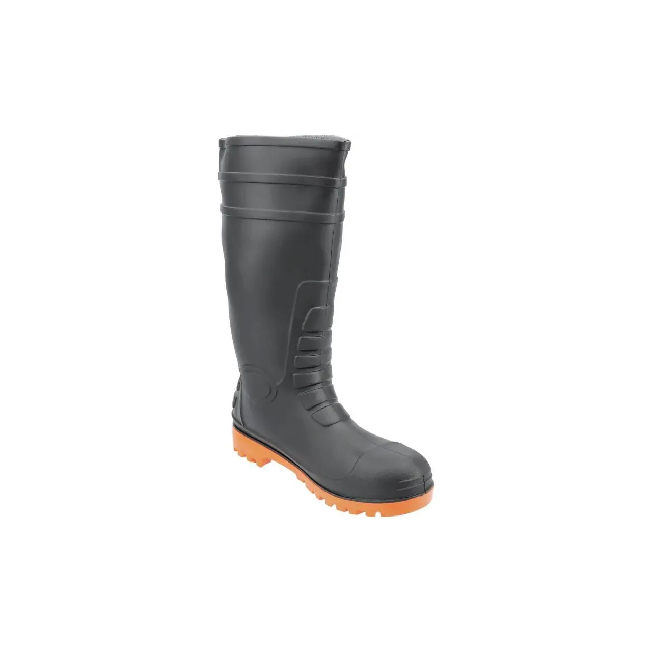Cizmele de lucru YT-80881 din seria PORTLAND S5, cu bombeu metalic rezistent la impact și o inserție anti-puncție care protejează piciorul împotriva perforărilor.