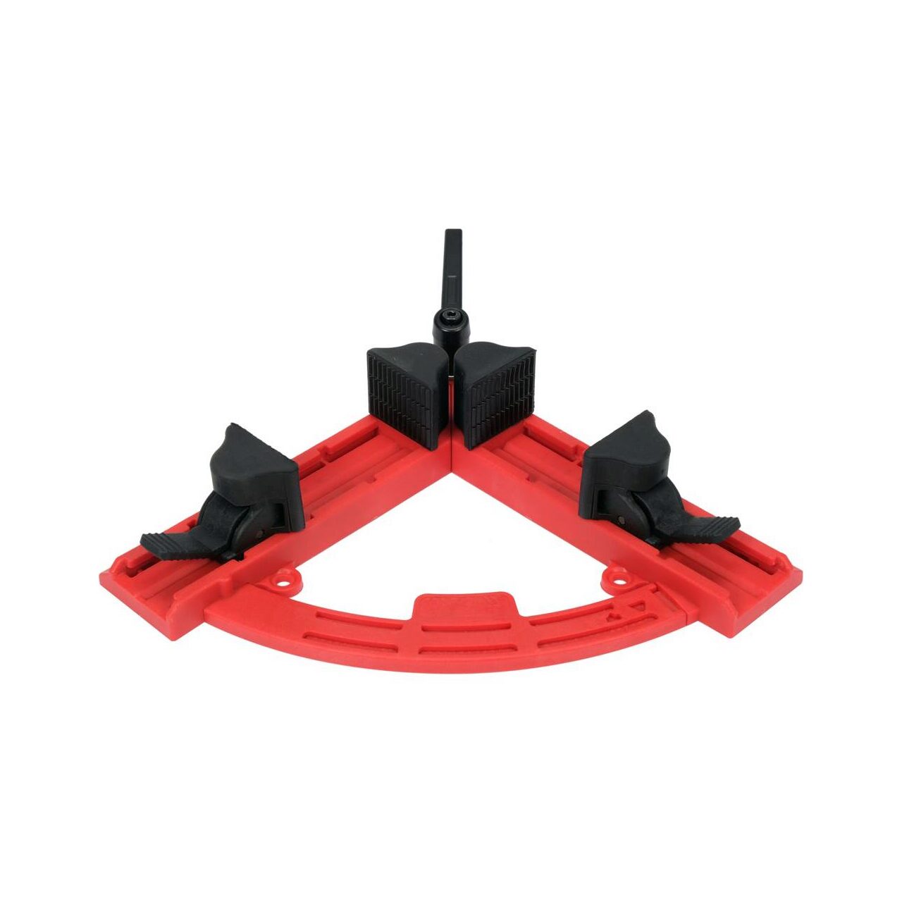 Clemă unghiulară cu unghi reglabil. Unghiul poate fi reglat în intervalul 30-90°. Setările sunt blocate efectiv cu cleme excentrice. Setarea unghiului este facilitată de o scară precisă. Clema poate fi înșurubată pe blatul de lucru.