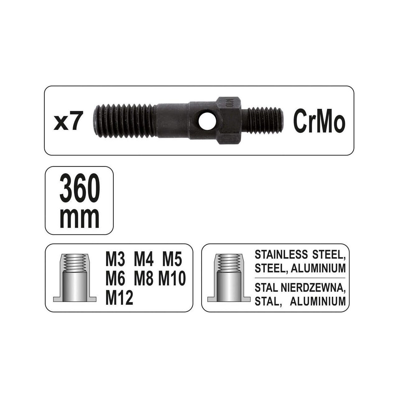 Cleste pentru pilute nituibile M3 m4 M5 M6 M8 M10 M12 Yato YT-36127 - Informații despre acest produs: