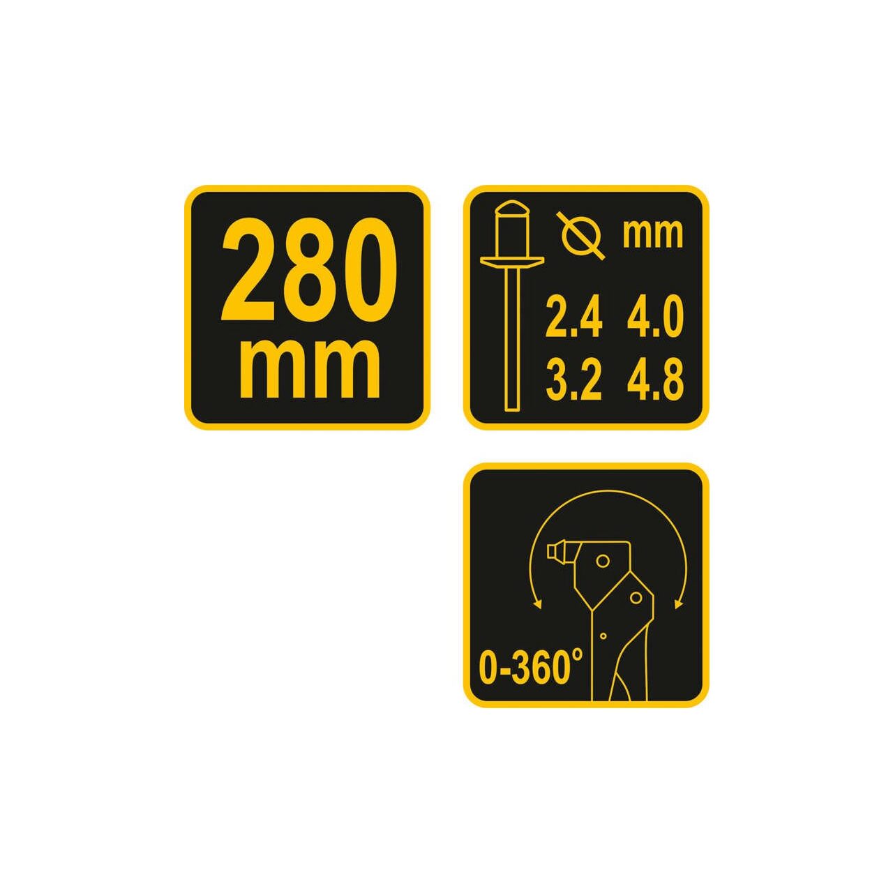 Cleste pentru popnituri cap rotativ 280 mm 2.4 - 4.8 mm Vorel 70100 - Informații despre acest produs: