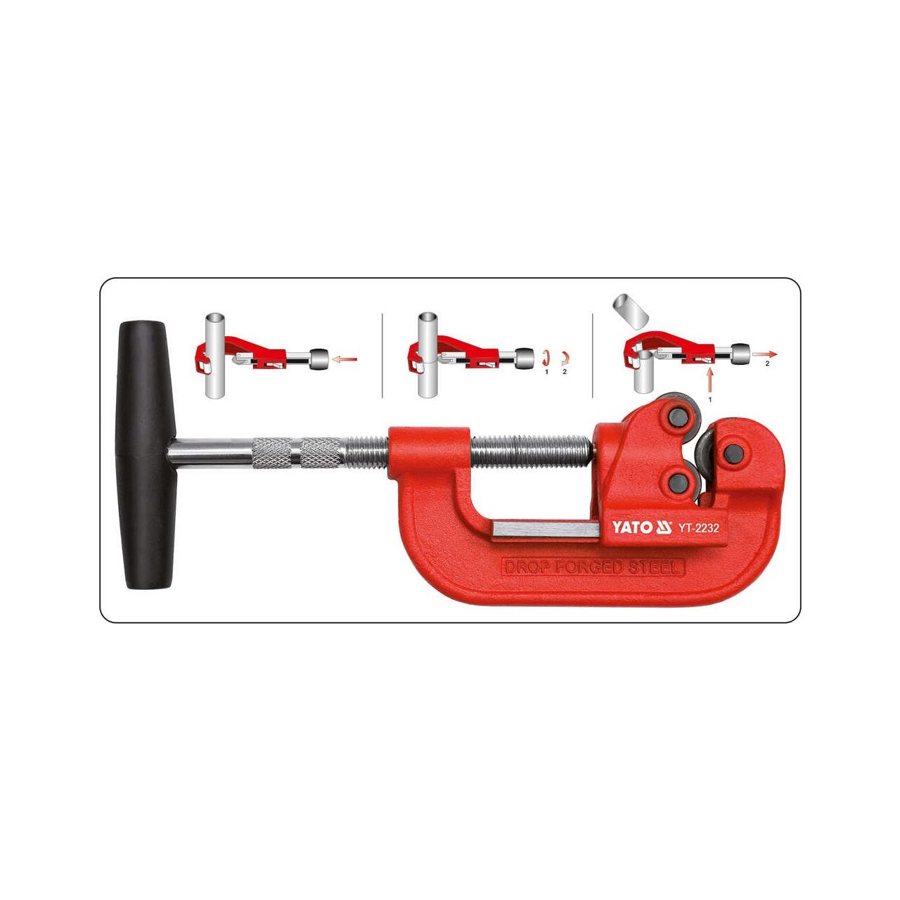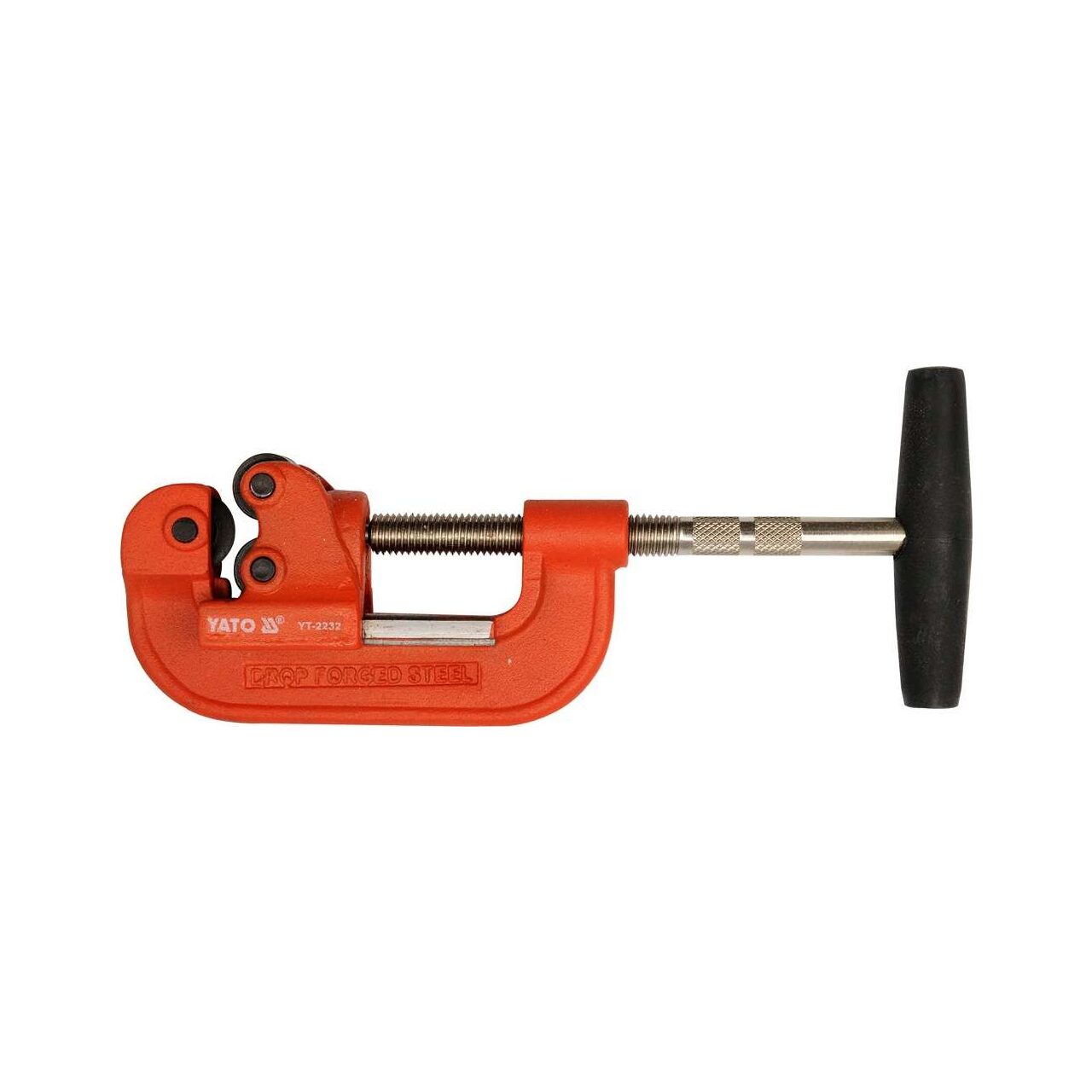 Caracteristici produsFreză cu role cu clemă pentru cuțit. Pentru tăierea țevilor din oțel, cupru, aluminiu și plastic de la 10 la 40 mm. Cutterul este echipat cu două role de presiune rotative pentru o mai bună ghidare a țevii. Un tăietor circular cu un profil selectat corespunzător este fabricat din oțel rulment. Acest lucru asigură o durată de viață foarte lungă a tăietorului și o precizie ridicată de tăiere. În plus, reglarea presiunii șurubului permite reglarea precisă a forței de tăiere. Oferta include și roți de tăiere de rezervă pentru acest tăietor, sub indexul YT-22314.Domenii utilizarePentru tăierea țevilor din oțel, cupru, aluminiu și plastic cu diametre de la 10 la 40 mmParametrii- Diametru maxim de tăiere [mm]: 10-40