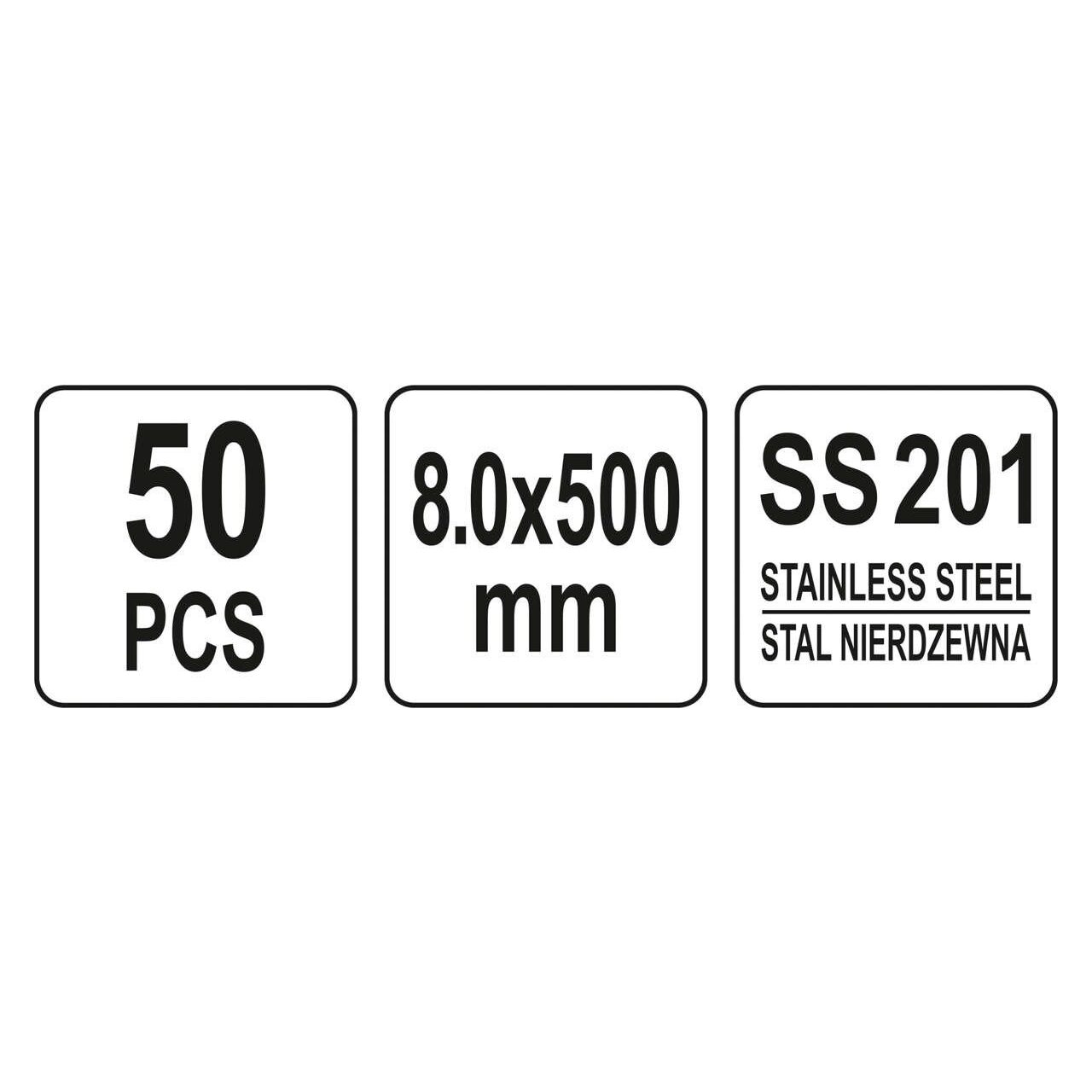 Coliere metalice reglabile 8.0 x 500mm 50buc Yato YT-70586 - Informații despre acest produs: