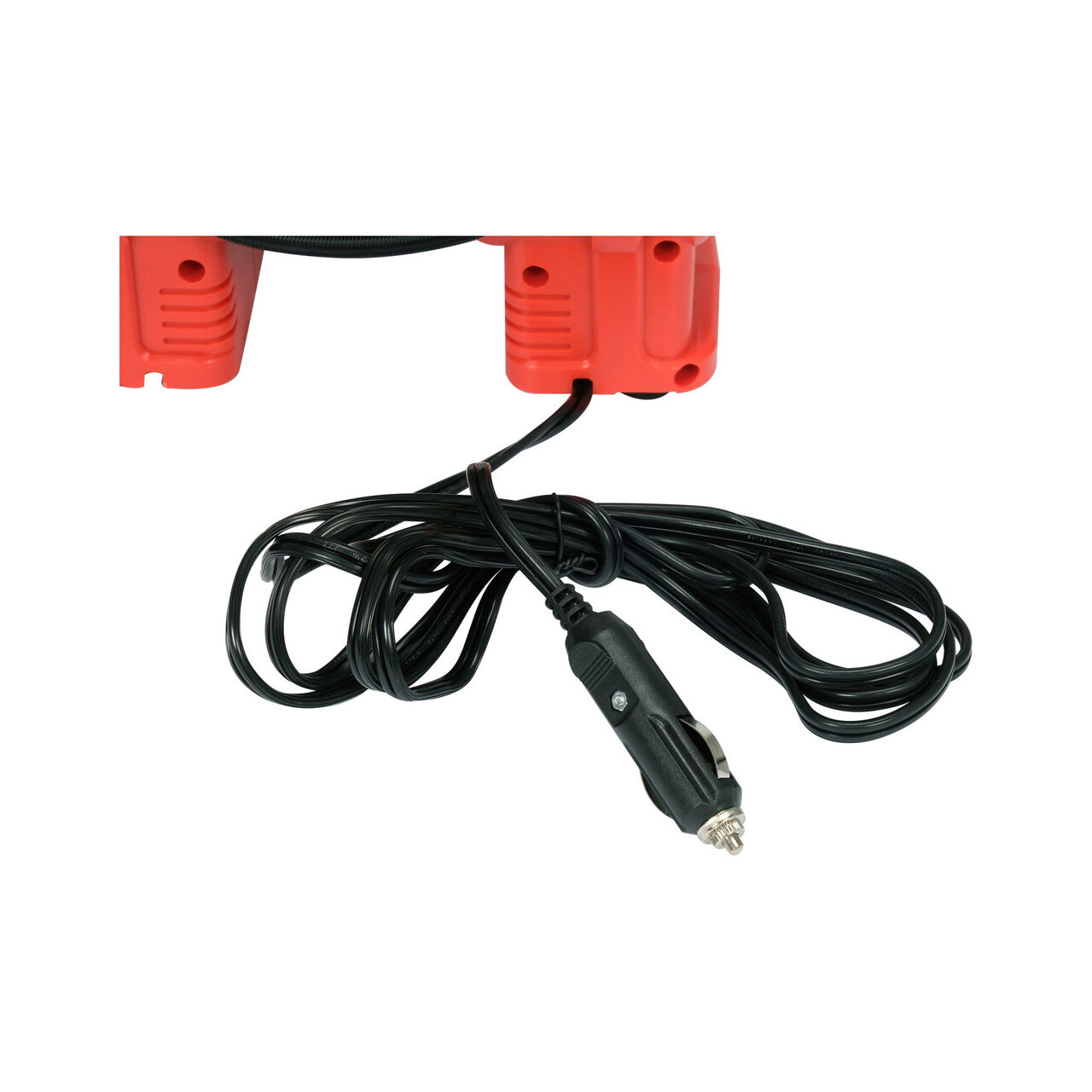 - Cablul de alimentare de la priza de brichetă de 12V ajunge până la roțile din spate ale autoturismului (lungime de 3 m)