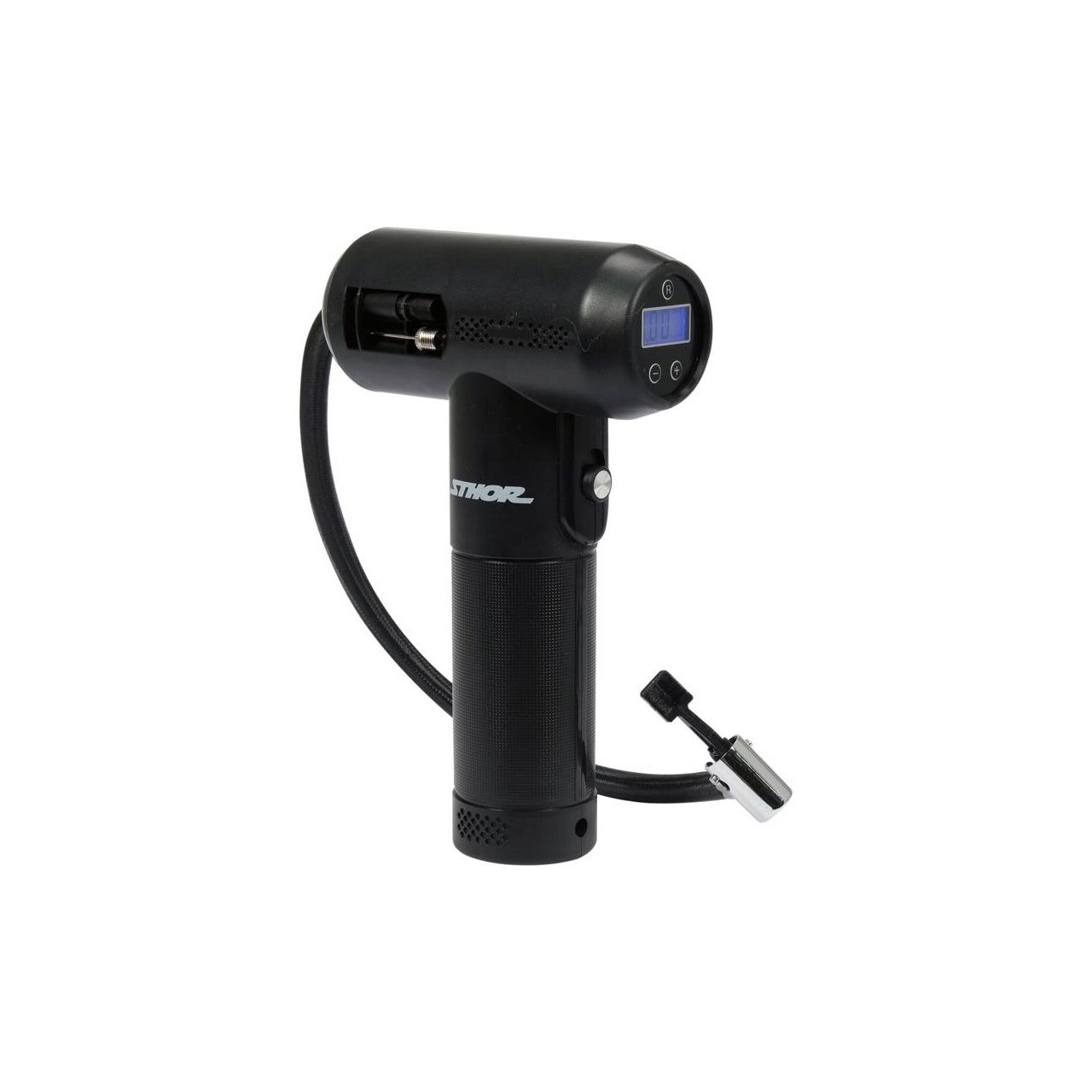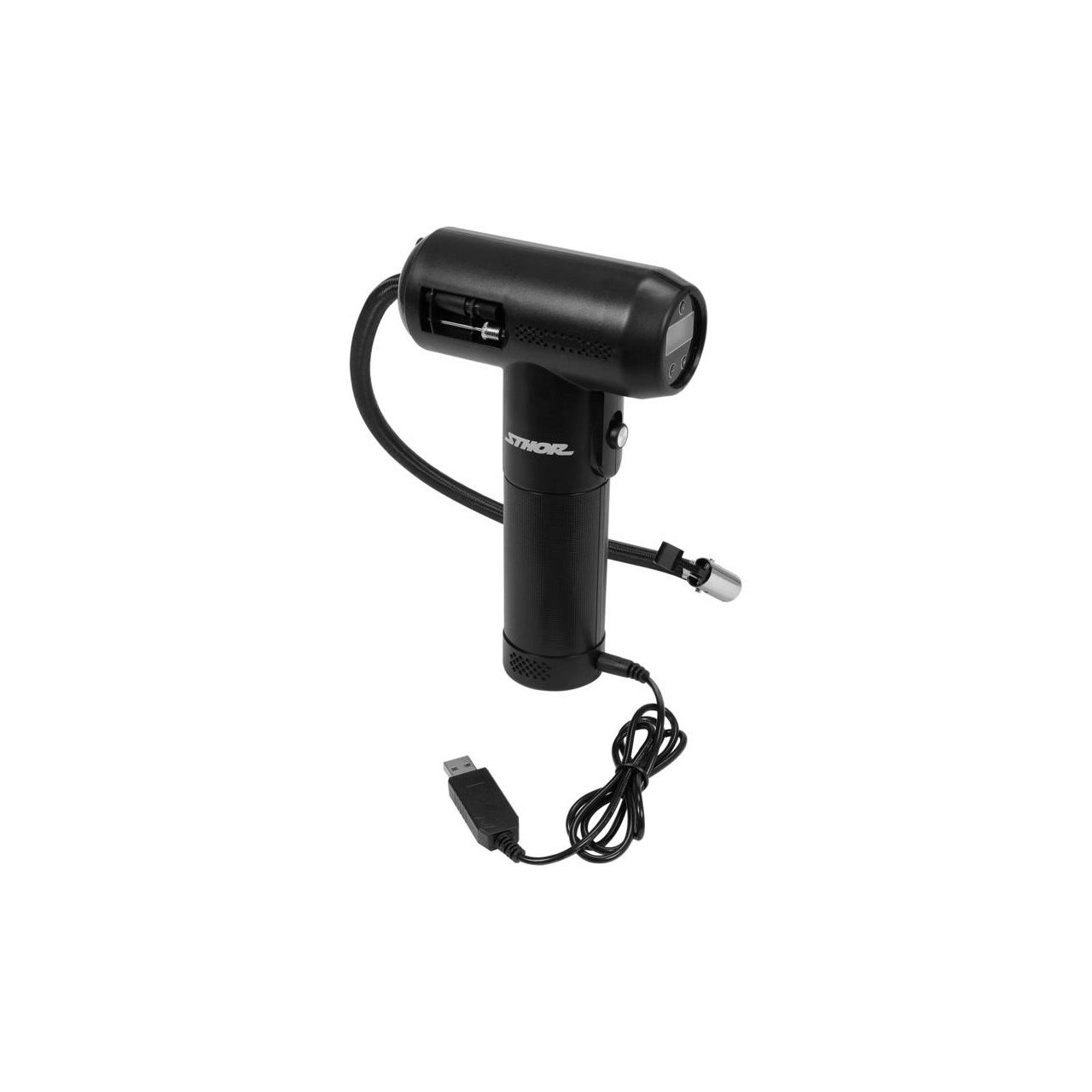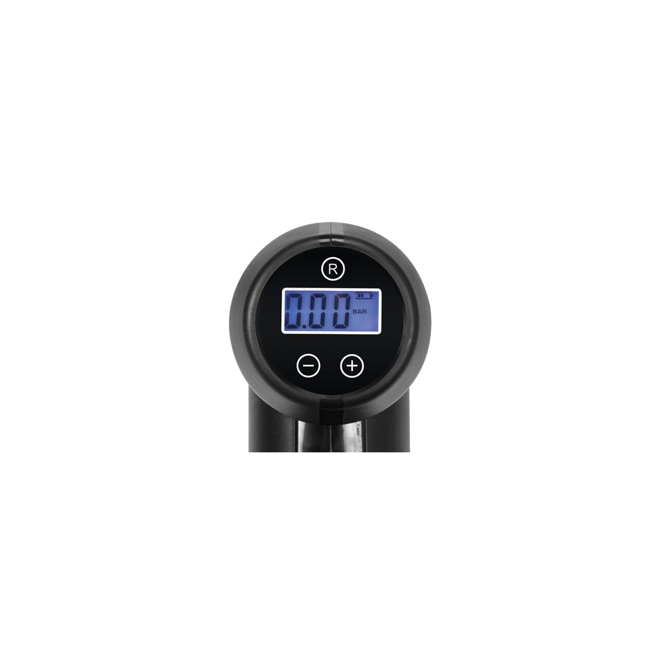 Compresor cu manometru digital LED. Este alimentat de o baterie încorporată, încărcată printr-un port USB. Compresorul va fi util pentru umflarea roților mașinilor, bicicletelor, quad-urilor, pentru umflarea mingilor etc. Datorită dimensiunilor sale compacte, dispozitivul este la îndemână și ușor de depozitat. Dispozitivul se oprește automat când se atinge presiunea setată. Compresorul are un indicator de încărcare încorporat.