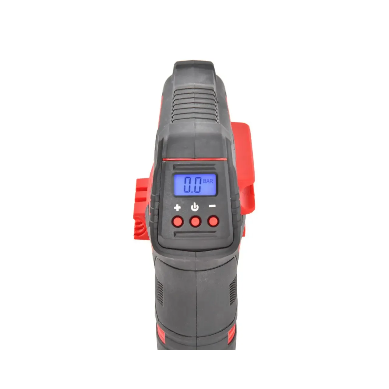Este echipat cu un manometru digital pe spate, care afisaza presiunea curenta, in acelasi timp puteti regla presiunea folosind butoanele.