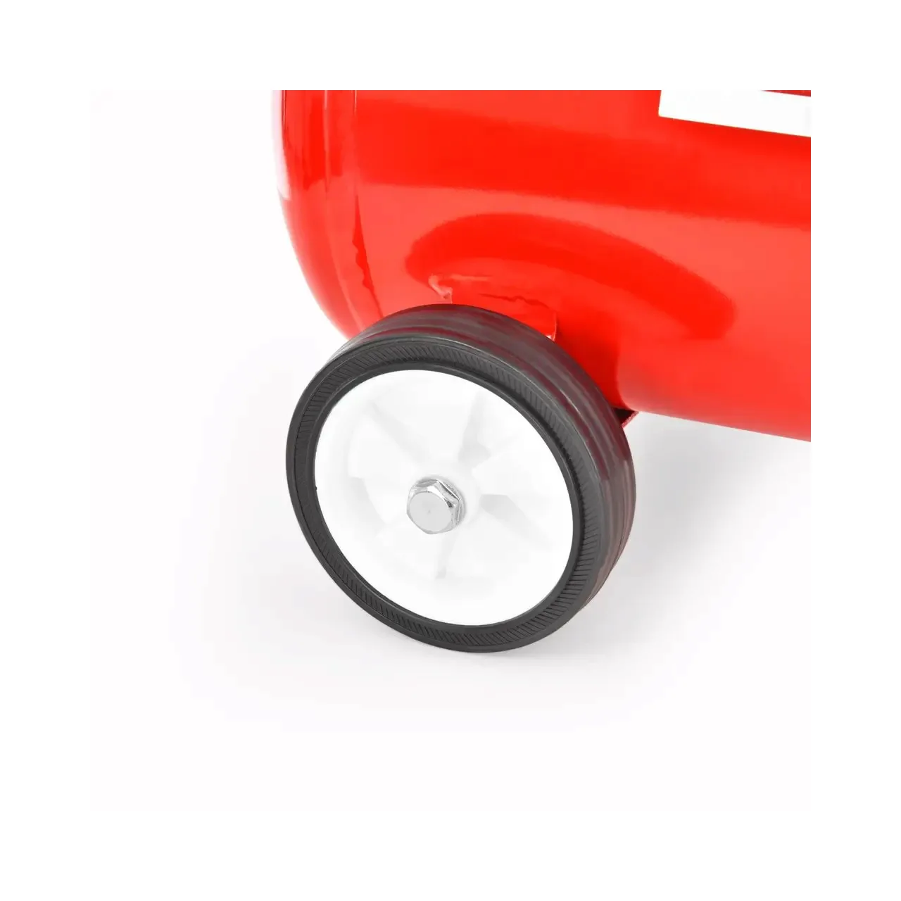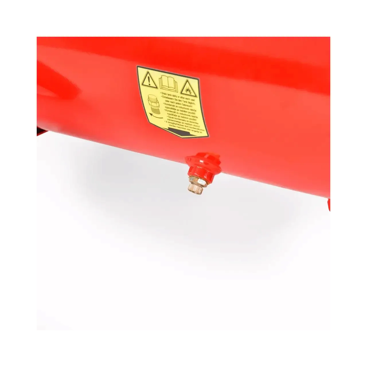 Echipat cu supapa de siguranta si manometru, robinet de scurgere pentru evacuarea manuala a condensului, grosimea rezervorului de 2,5 mm indeplineste cele mai stricte standarde europene, reglarea presiunii aerului cu presostat complet automat, picior de cauciuc pentru a amortiza vibratiile.