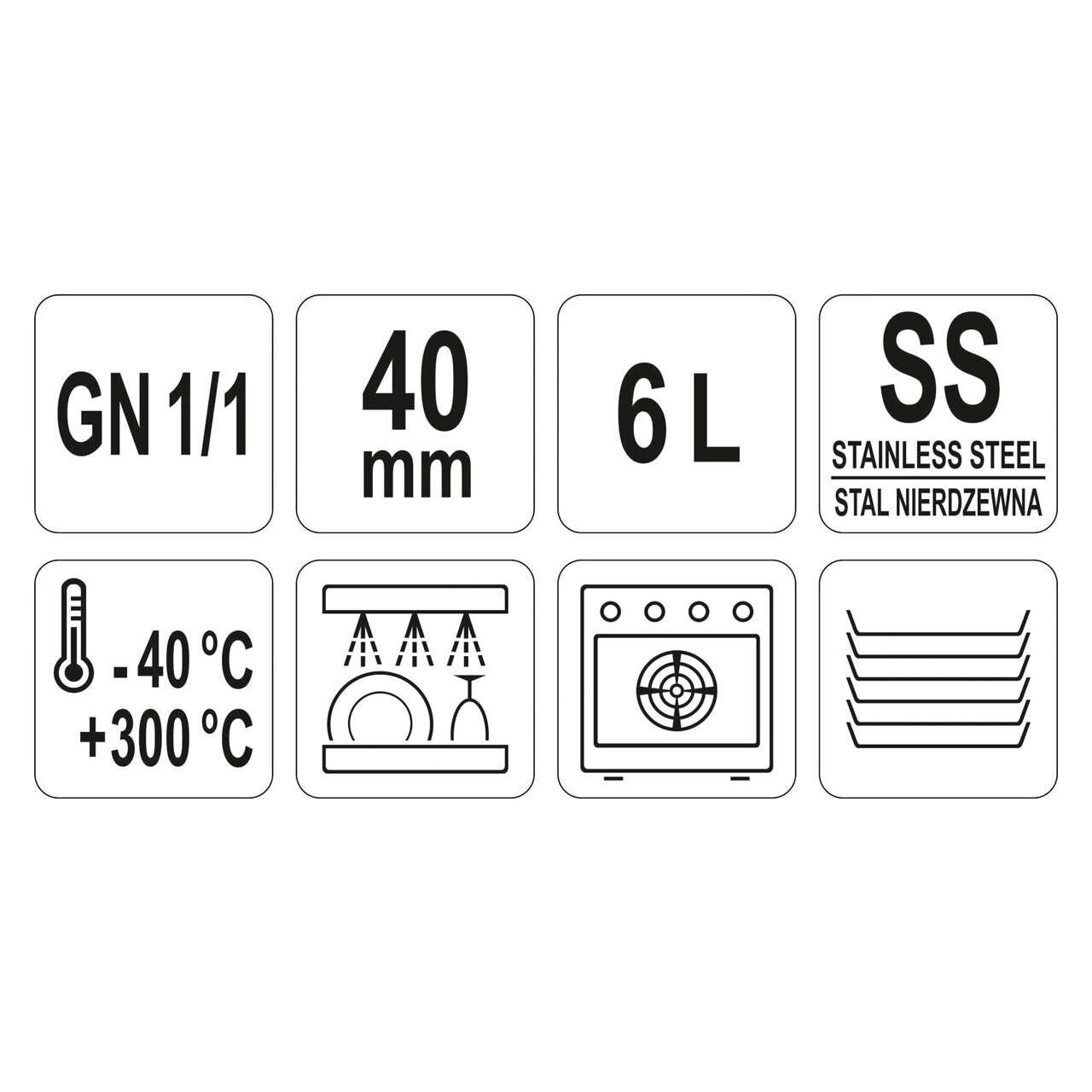 Container inox gn 1 / 1, 6 l, 30 mm × 325 mm × 40 mm Yato YG-00251 - Informații despre acest produs: