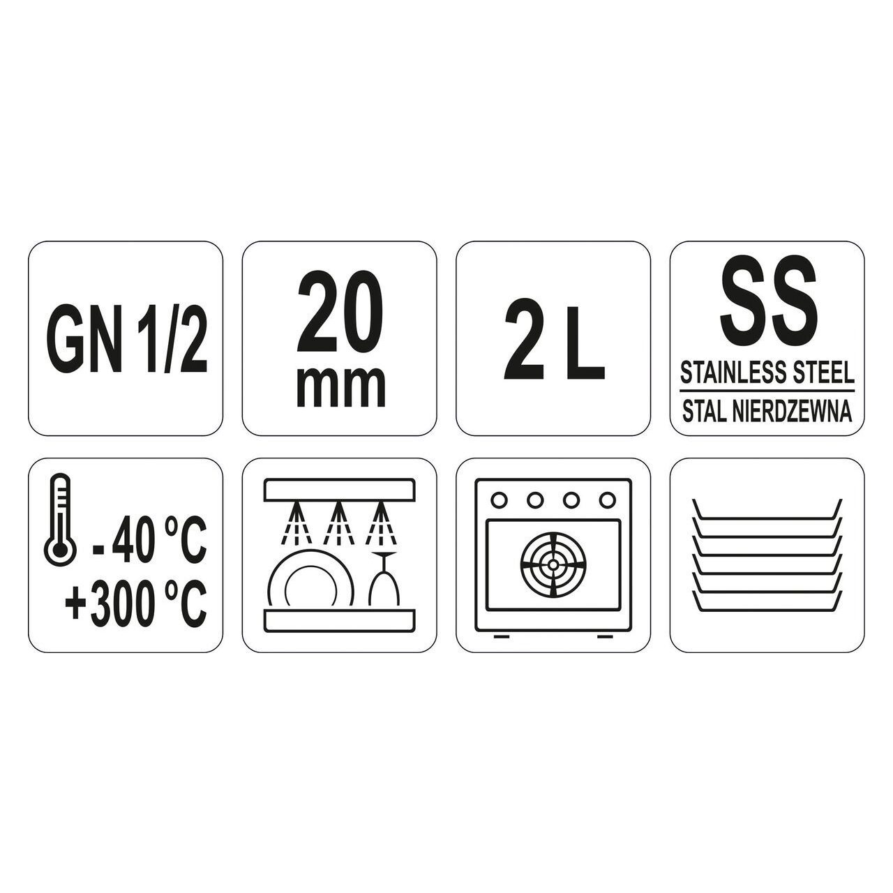 Recipient profesional YATO GN din oțel inoxidabil, GN 1/2, 20 mm , capacitate 2,0 l.