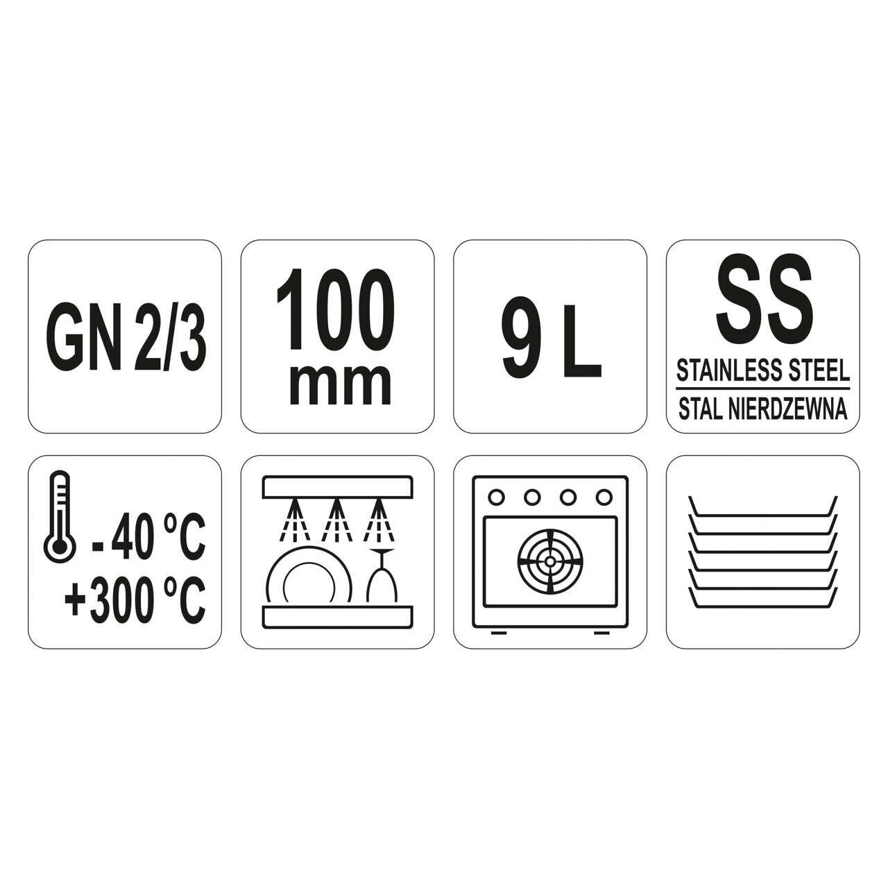 Container inox gn 2 / 3, 9 L Yato YG-00303 - Informații despre acest produs: