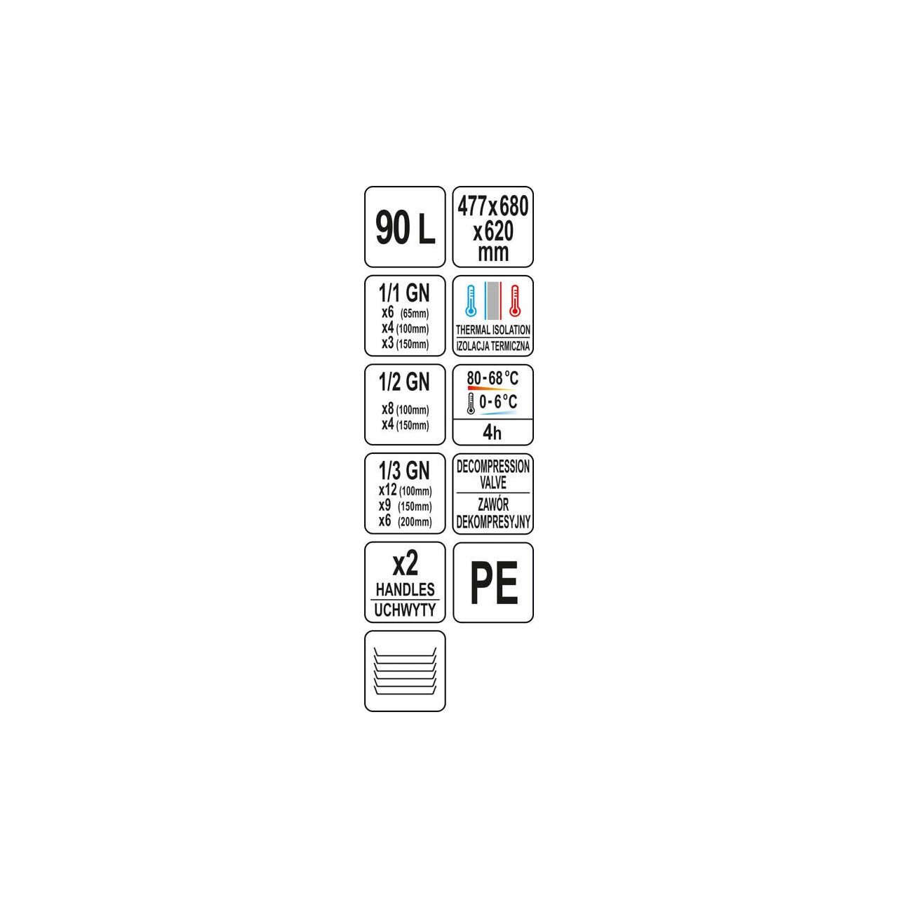 Caracteristici produsRecipient de catering termoizolat de către YATO cu o capacitate de 90L.