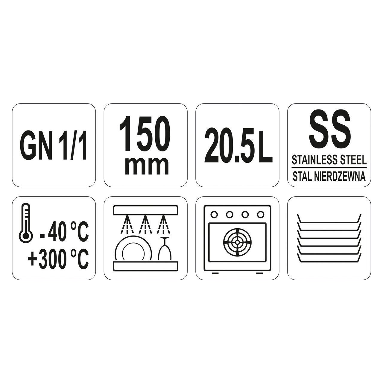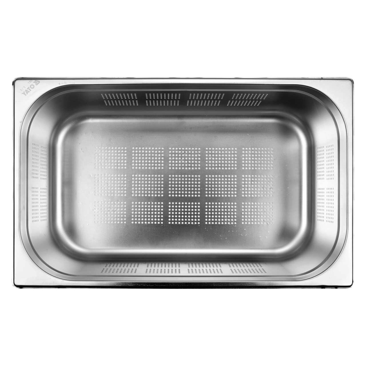 Recipient profesional perforat GN de la YATO din oțel inoxidabil, dimensiuni GN 1/1, 150 mm , capacitate 20,5 l .