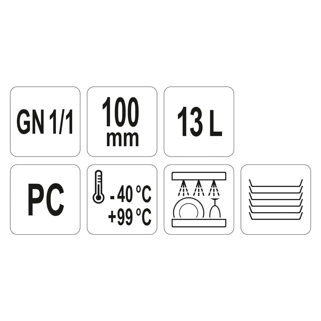 Caracteristici produsRecipient profesional GN de la YATO din policarbonat, GN 1/1 100 mm și capacitate 13,0 l.