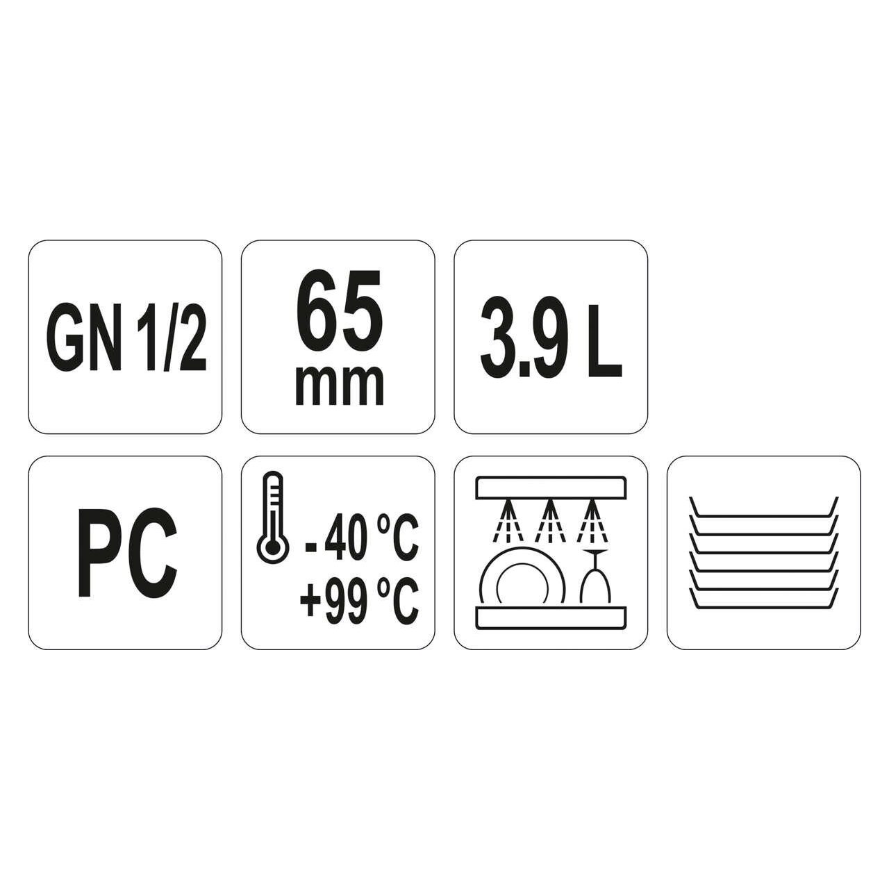Caracteristici produsRecipient profesional YATO GN din policarbonat, GN 1/2 65 mm și capacitate 3,9 l.