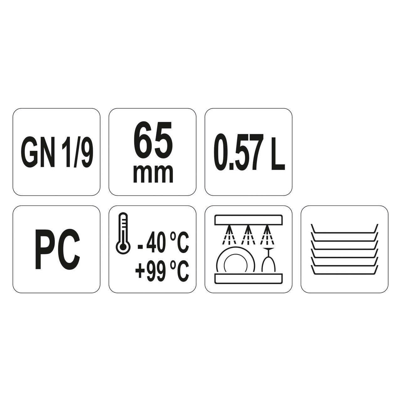 Caracteristici produsRecipient profesional YATO GN din policarbonat, GN 1/9 65 mm și capacitate 0,57 l.