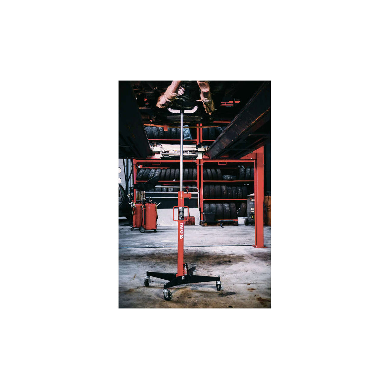 Cric hidraulic pt. cutii de viteza, echipat cu pompă pentru picioare și supapă precisă. Destinat lucrărilor cu cutie de viteze, conducte de eșapament, motor, suspensie etc. în mașinile de pasageri.