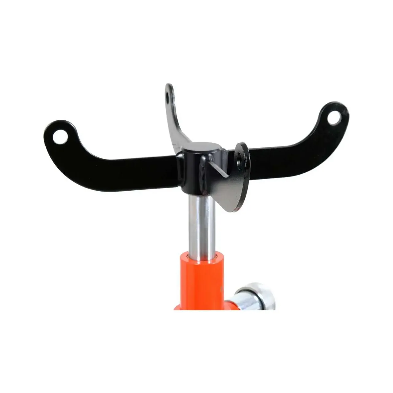 Lift hidraulic echipat cu o pompă de picior și o supapă de precizie. Proiectat pentru lucrul la cutia de viteze, țevi de eșapament, motor, suspensie etc. în autoturisme.