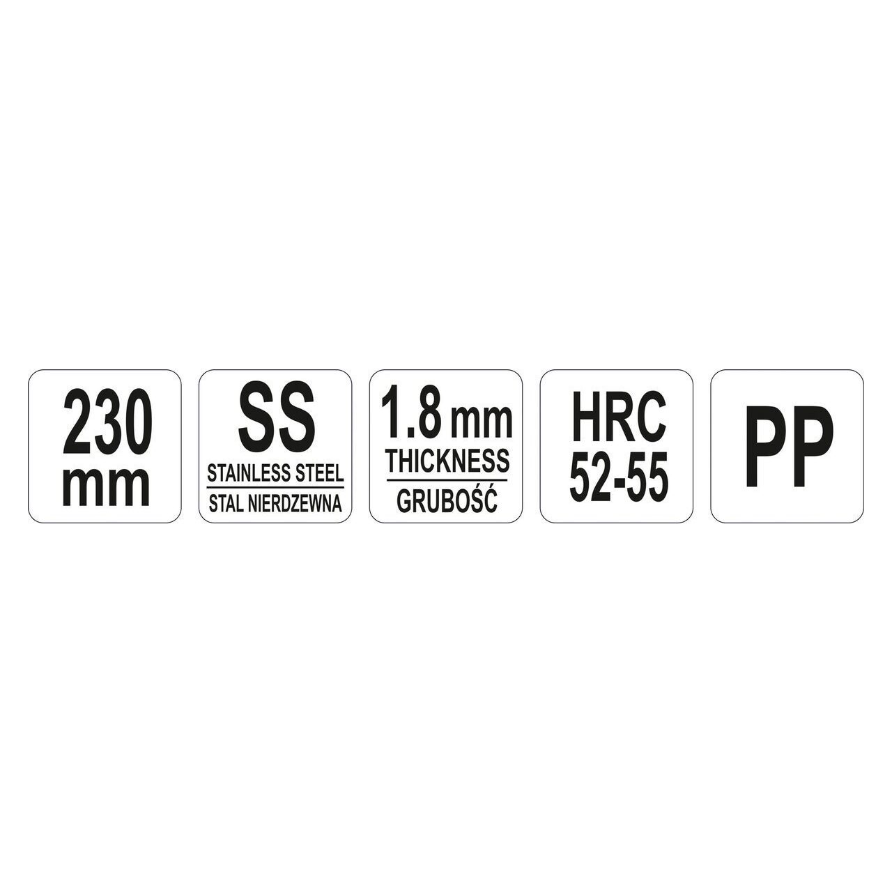Lama este fabricată din oțel inoxidabil cu o duritate de 52-55HRC și are o lungime de 230 mm.