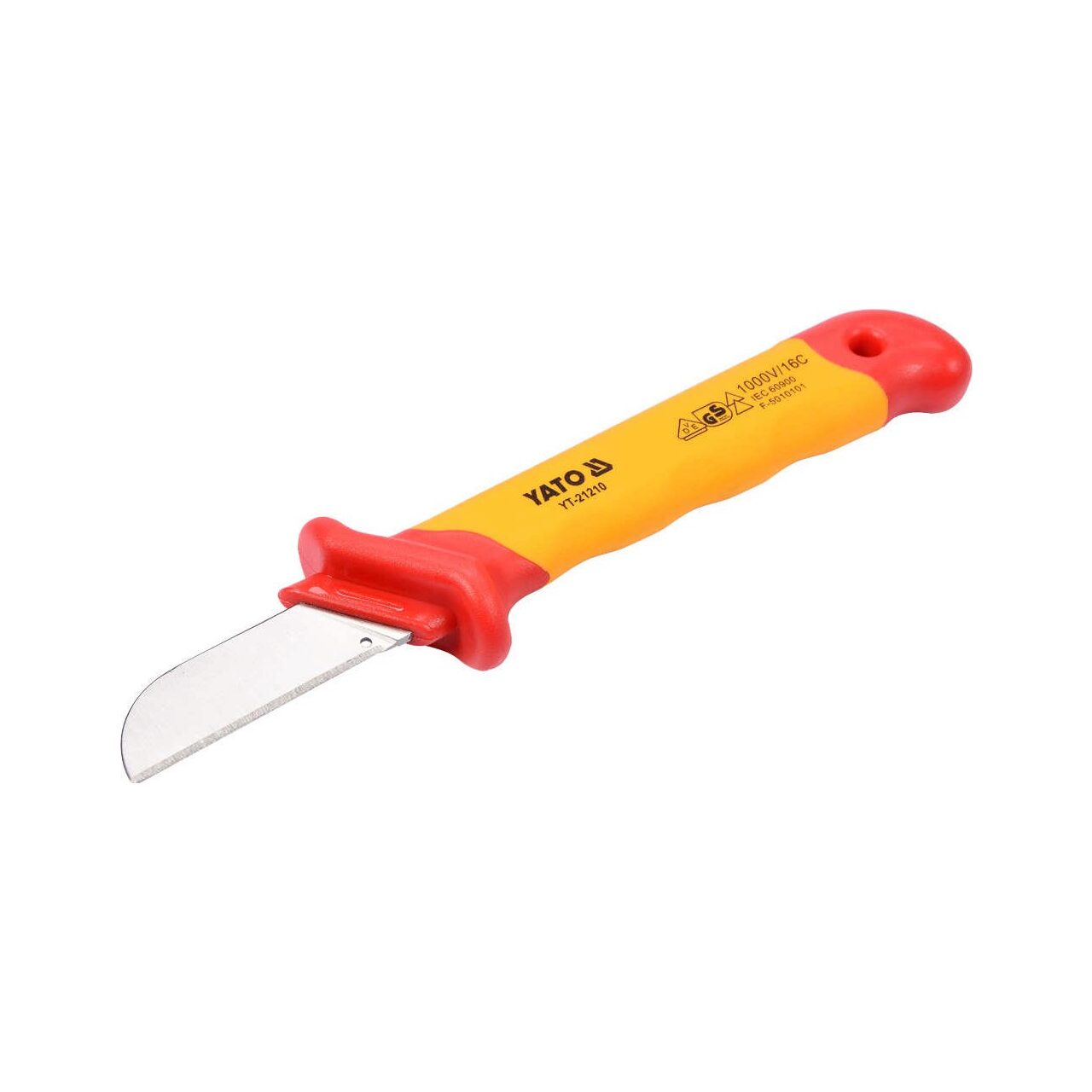 Cuțit electrician profesionist YT-21210 cu izolație VDE, fabricat din oțel CrV de înaltă calitate.