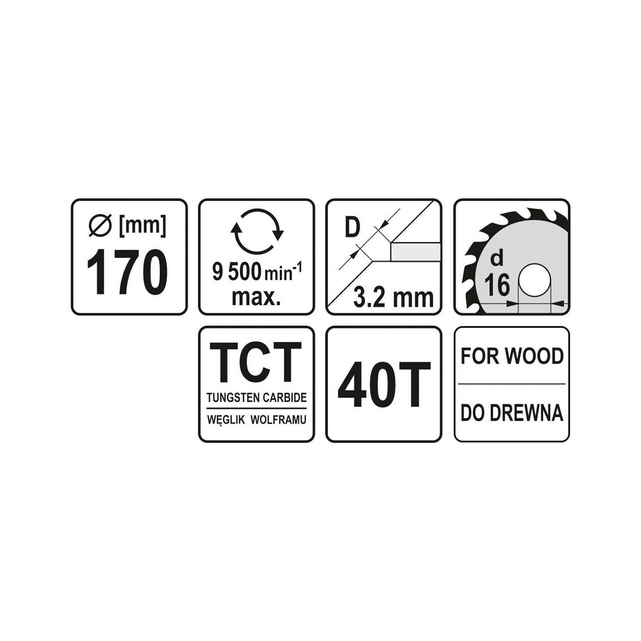 Disc circular pentru lemn 170 x 16 x 2.2 mm Yato YT-60583 - Informații despre acest produs: