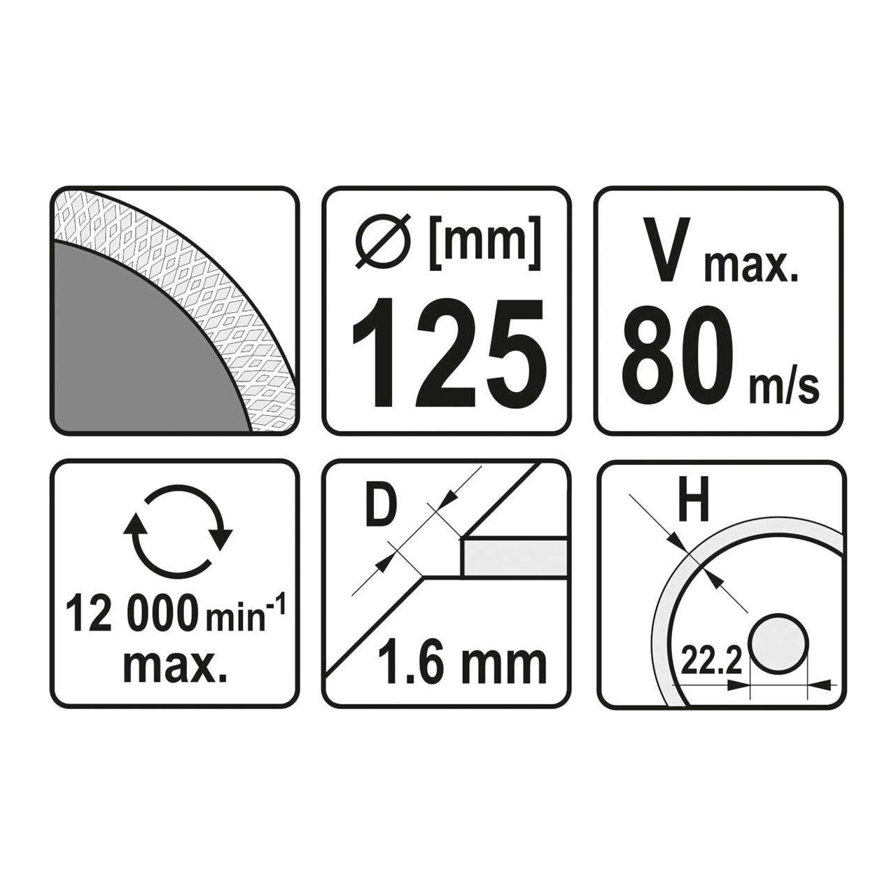 Disc Diamantat, 125 x 22.2 x 1.6 mm Yato YT-59972 - Informații despre acest produs: