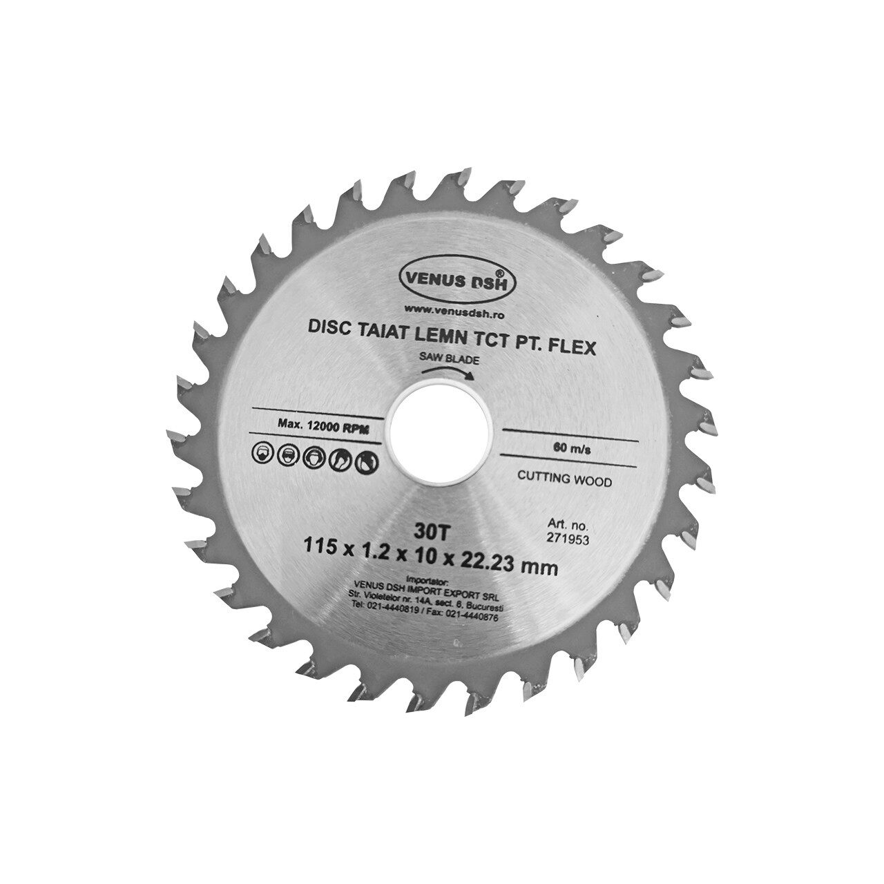Disc taiat lemn TCT pentru flex - 115 x 1.2 x 10 x 22.23 MM - 30 T