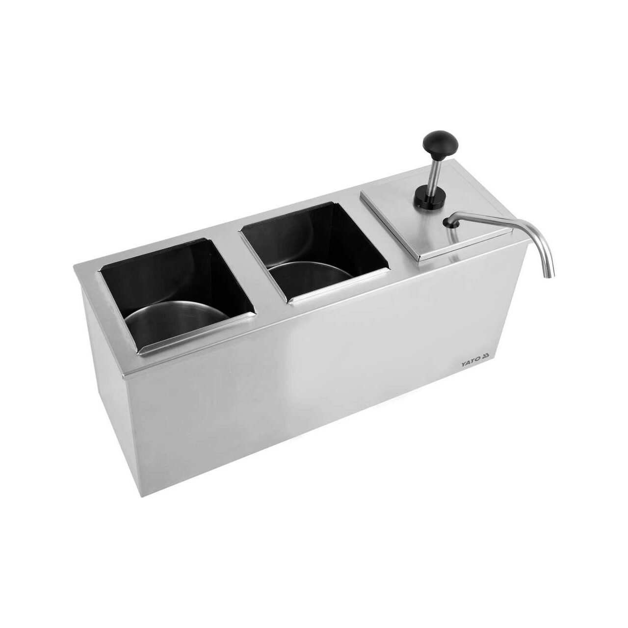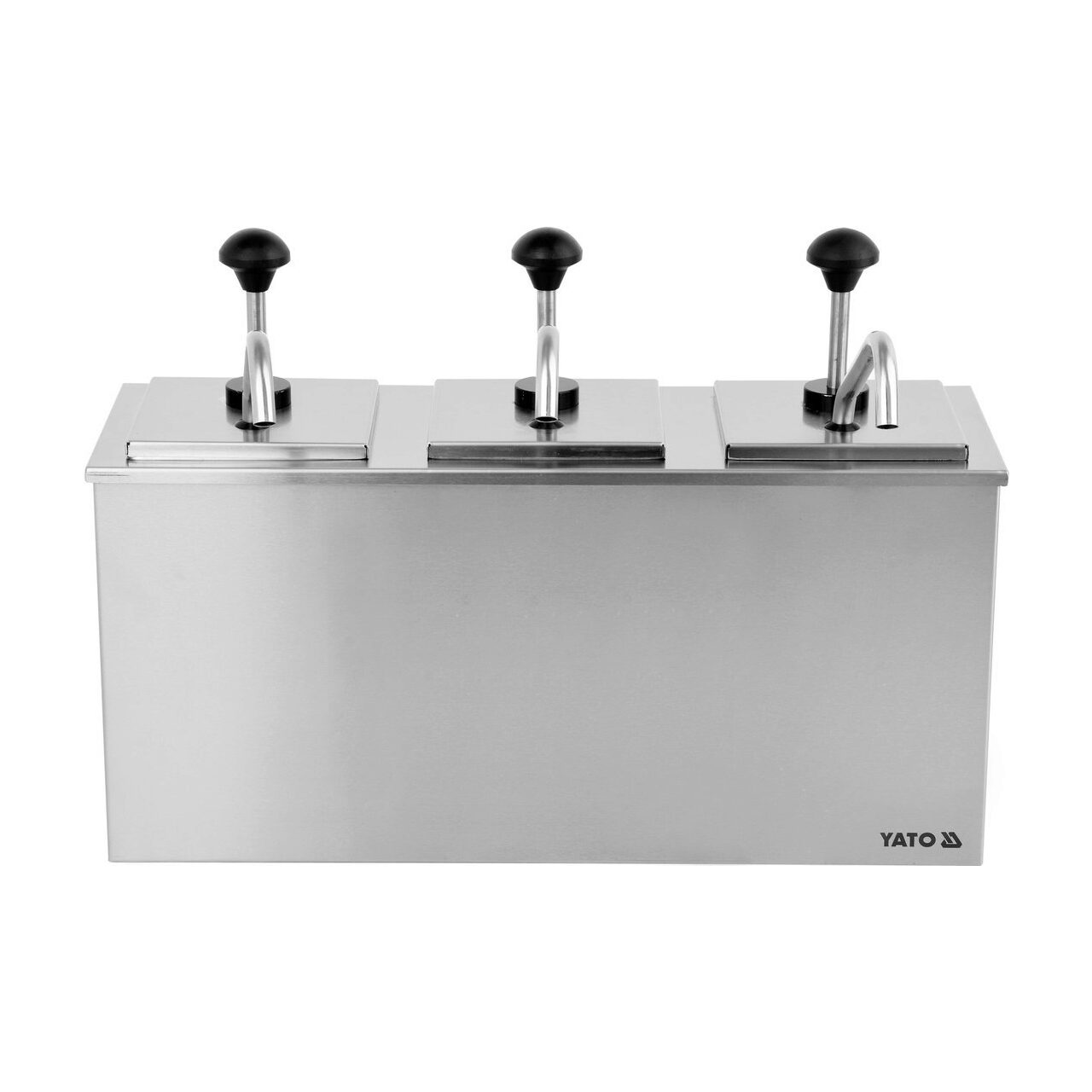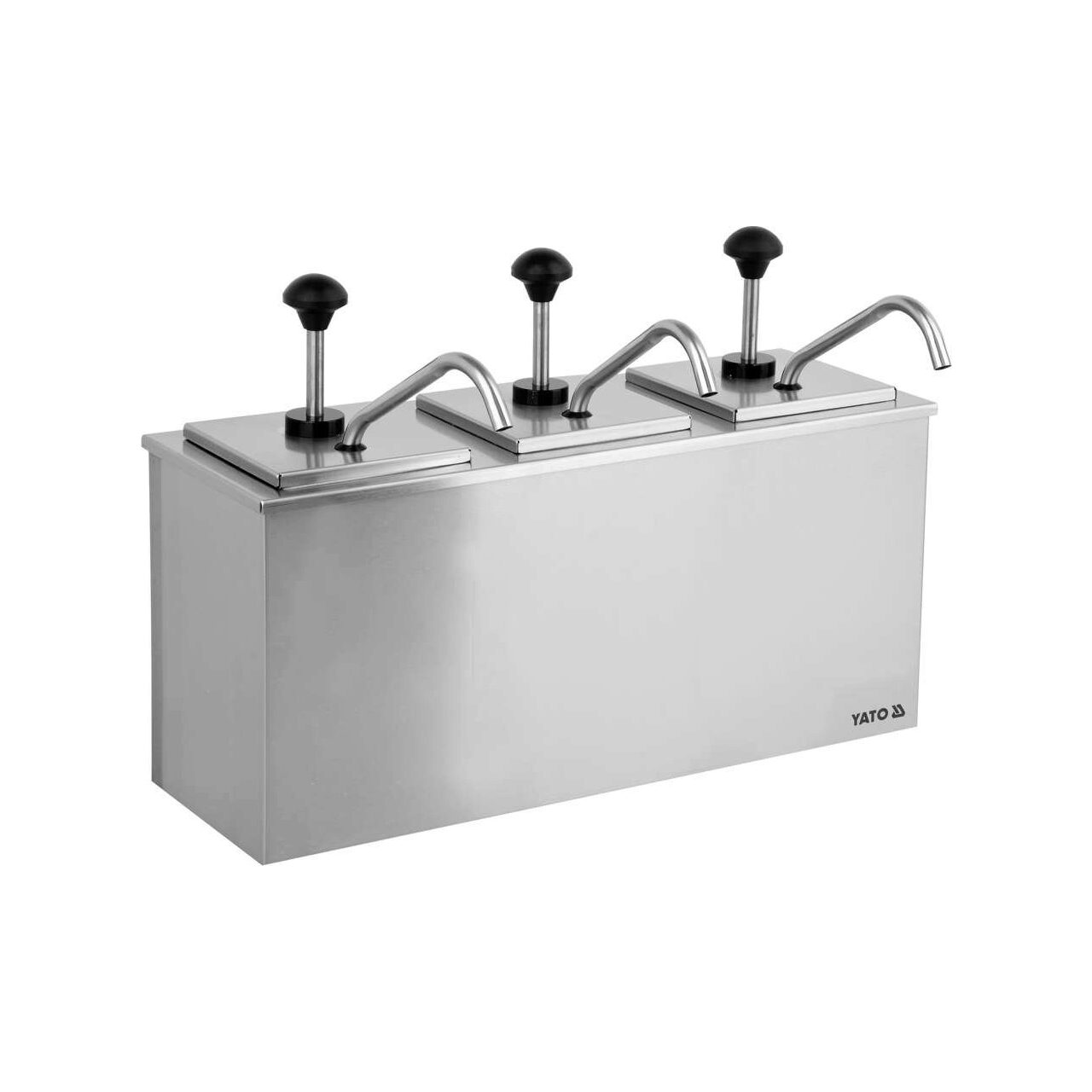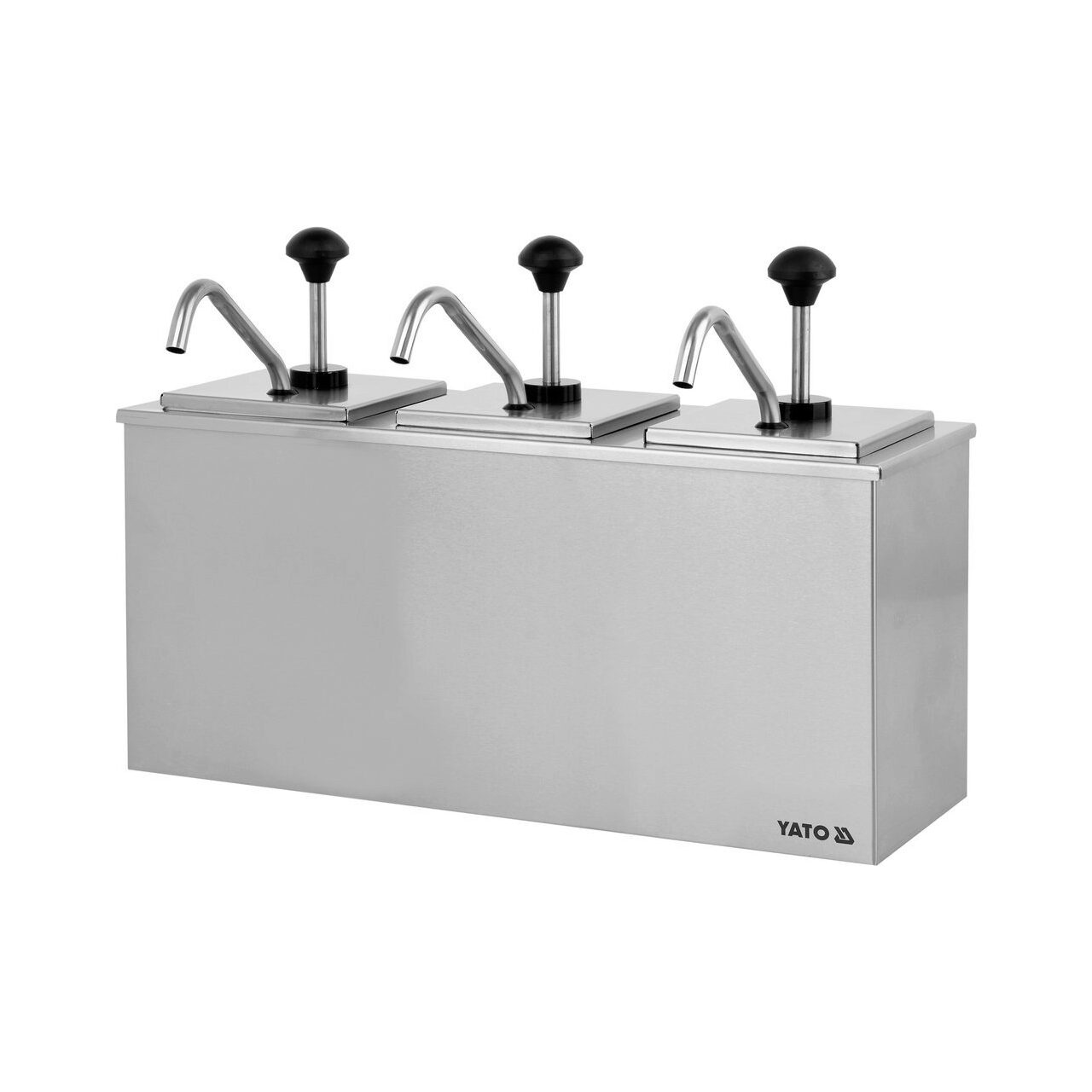 Dispenser de sos triplu YATO cu o capacitate de 3x3L Fabricat din oțel inoxidabil de înaltă calitate, dozatorul de sos triplu cu o capacitate de 3x3L poate fi utilizat pentru distribuirea simultană a trei sosuri diferite, cum ar fi ketchup, muștar sau altele.