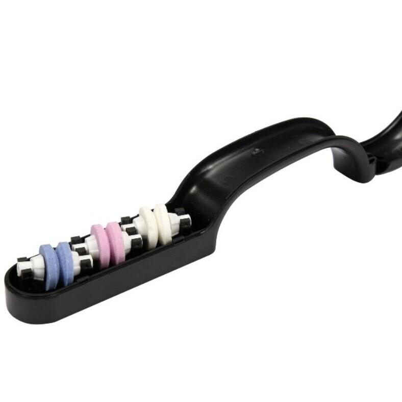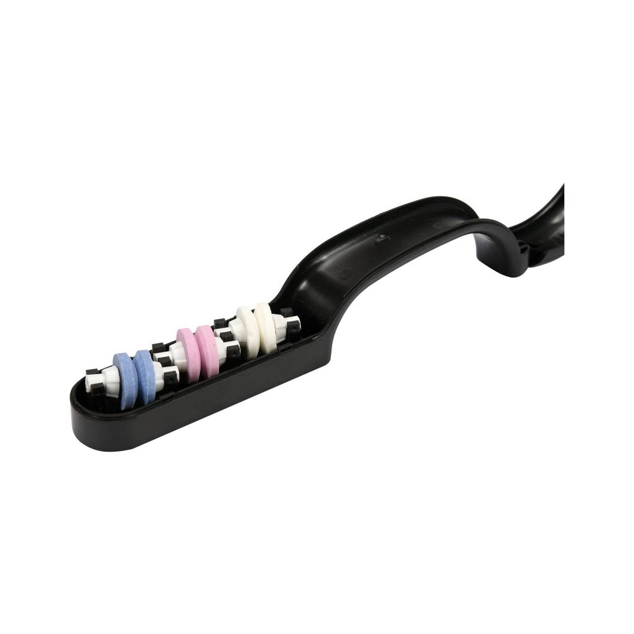 În funcție de scop, discurile de ascuțit sunt realizate din material ceramic, corindon crom și oxid de aluminiu . Acest lucru garantează rezultate optime de ascuțire inițială și fină. Unghiurile discurilor selectate corespunzător, fantele de ghidare a lamei și utilizarea apei asigură o ascuțire eficientă și precisă.