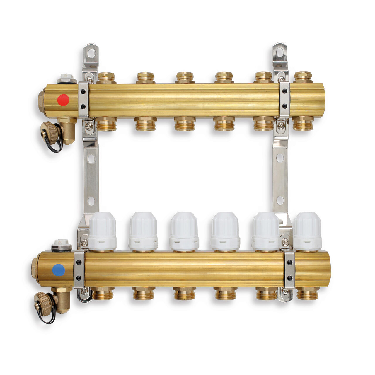 Distribuitor/colector 1" din alama 6 circuite 3/4" cu robineti termostatati si ventile inchidere, Ferro RZ06S - Informații despre acest produs: