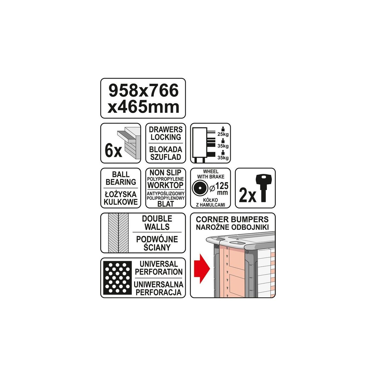 Dulap de scule profesional cu 6 sertare Yato YT-0902 - Informații despre acest produs: