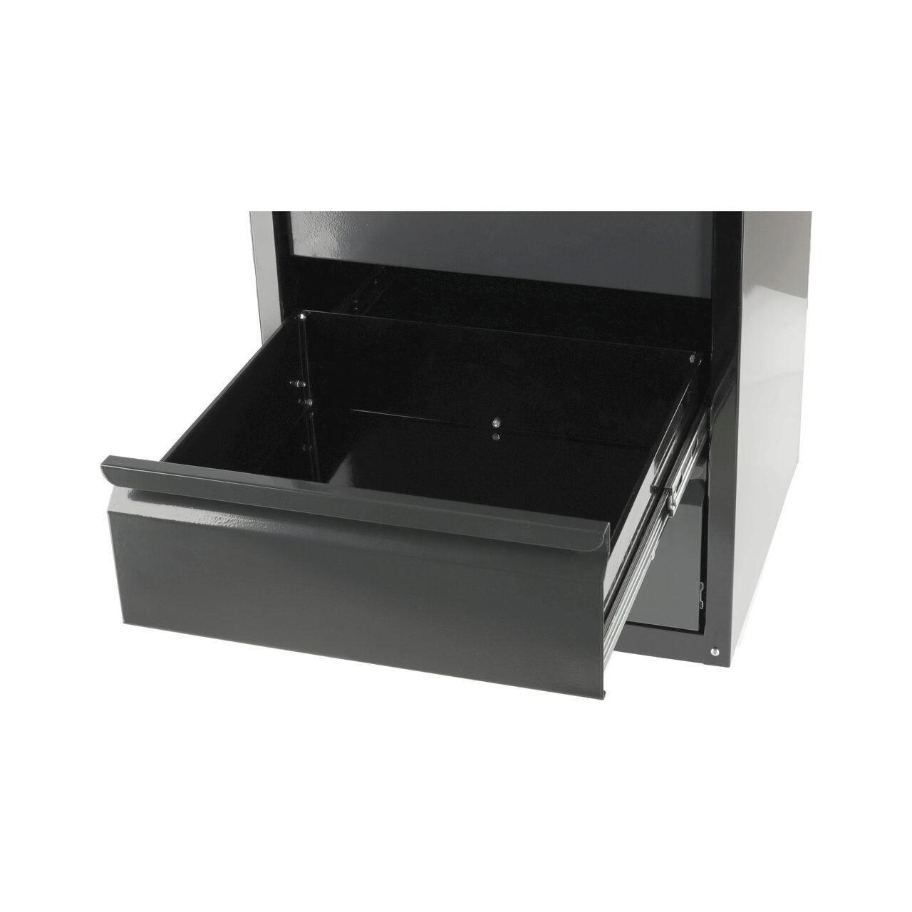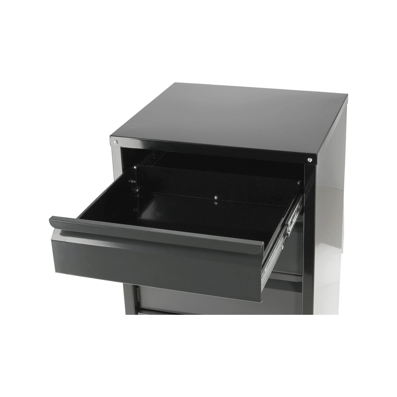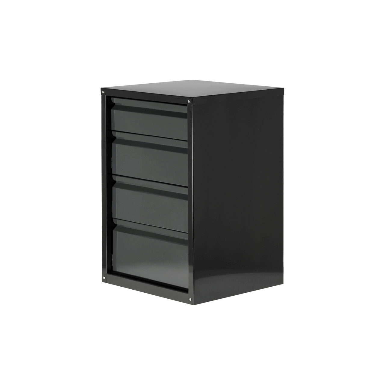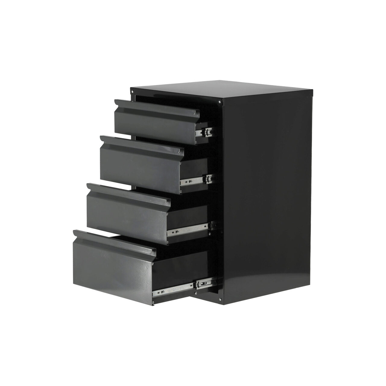 Un dulap de atelier care ajută la menținerea ordinii în garaj, atelier sau service auto. Dulapul este fabricat din tablă de oțel vopsită în negru. Finisajul elegant îl face potrivit pentru orice atelier. Vă permite să creați un loc de muncă confortabil și asigură depozitarea în siguranță a uneltelor. Dulapul este alcătuit dintr-un corp în care sunt amplasate patru sertare solide pe glisiere cu rulmenți. Dulapul trebuie asamblat de unul singur.