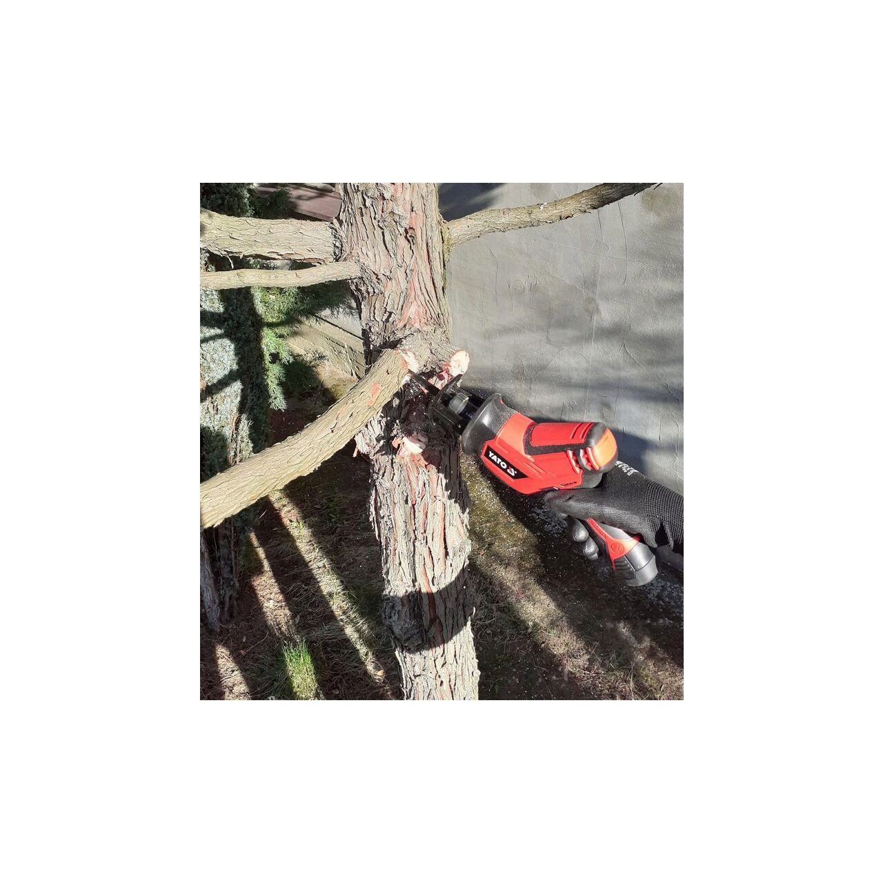 - Inclus: baterie YT-82909 de 2 Ah și încărcător de 1 h, lame de ferăstrău HCS negre pentru lemn și ramuri și lame BiM albe pentru tăierea oțelului, tablelor și lemnului, inclusiv lemnul cu cuie