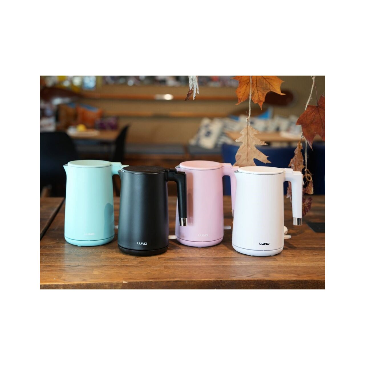 Fierbătorul LUND este disponibil în patru culori: alb, negru, roz și turcoaz. Forma sa simplă, cu linii ușor rotunjite, stratul mat și culoarea uniformă, îl fac ușor de integrat în interioare clasice sau moderne.