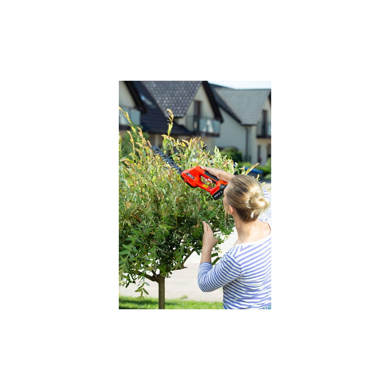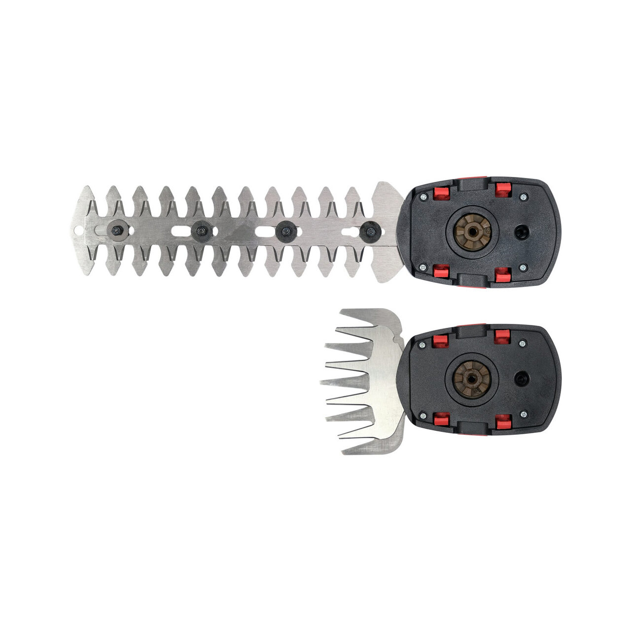 Foarfece de iarbă ușoare, alimentate cu baterii. Echipată cu două tipuri de lame: frontală pentru iarbă și laterală pentru tunderea tufișurilor. Lamele sunt fabricate din oțel carbon de înaltă calitate, șlefuite și caracterizate printr-o rezistență ridicată la coroziune.
