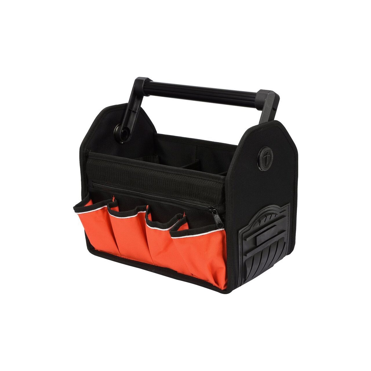 Un container mare, deschis pentru scule, din poliester tehnic 600 D. Fundul containerului are o structură întărită, rezistentă la umiditate. Prin urmare, poate fi folosit în locuri cu condiții de lucru mai puțin plăcute. Cusături și buzunare principale într-o versiune adaptată la sarcini grele. Manerul central din tub de aluminiu cu capac moale, antiderapant, rezista la sarcini grele si stabilizeaza forma recipientului.