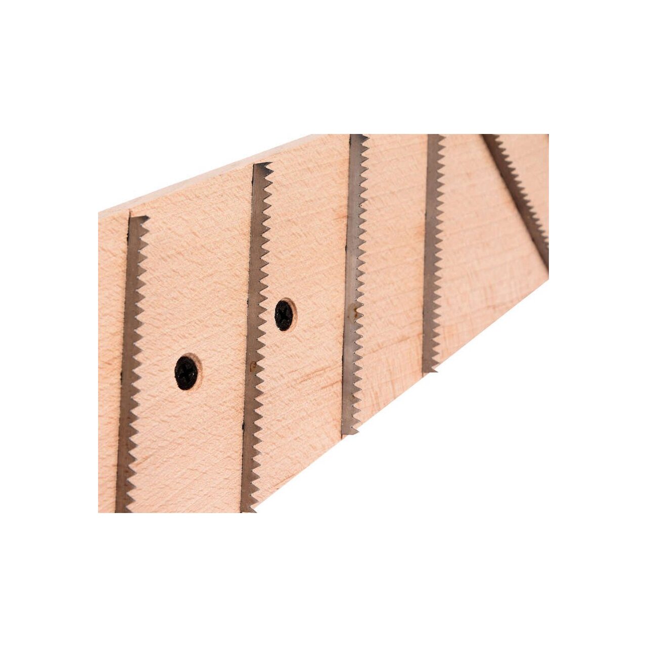 Echipat cu un mâner din lemn și cu lame din oțel zimțate, un dispozitiv de tăiere special cu dimensiunile de 80x400 mm .