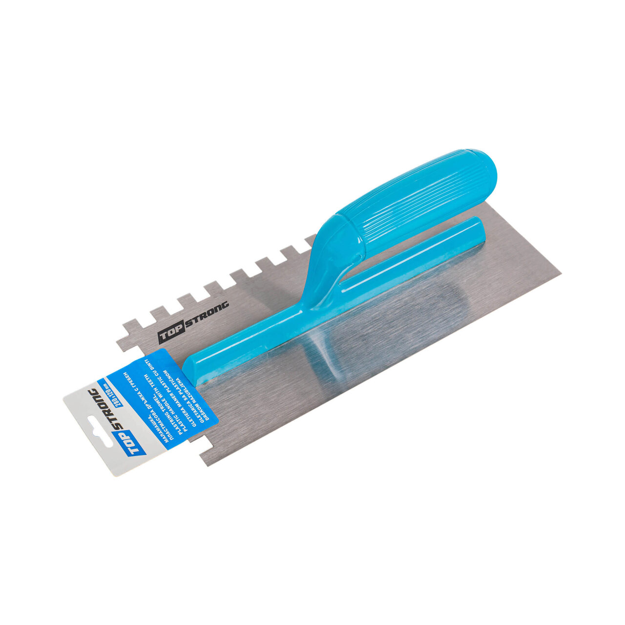 Gletiera cu maner din plastic, din gama TopStrong - Destinata aplicarii adezivilor si a altor mixuri pe placile de ceramica